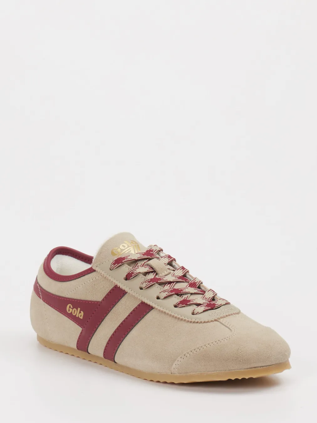 Vintage-Flair mit urbanem Twist. Gola präsentiert diesen Retro-Sneaker für Damen, gefertigt aus hochwertigem Veloursleder. Ob zum Spaziergang durchs Viertel oder bei lockeren Freizeitaktivitäten – das flach-schmale Modell im warmen Beigeton setzt mit bordeauxroten Streifen und zweifarbiger Schnürung markante Akzente. Die matte Oberfläche unterstreicht den Retro-Charme, während das Fischgrätprofil der Gummisohle für Grip sorgt. Textilfutter und die Option für Einlagesohlen erhöhen den Tragekomfort. Inspiriert von 90s-Streetwear, trifft er den aktuellen Color-Blocking-Trend. Funktionales Design mit modischer Aussagekraft – typisch Gola.