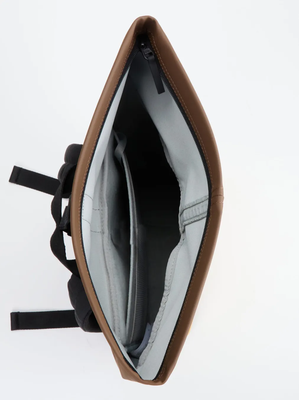 Nachhaltig, vegan und absolut stylish! Das Berliner Label Ucon Acrobatics präsentiert diesen Rucksack in der Form Hajo Mini. Das vegane Tech-Obermaterial hat eine weiche Haptik und überzeugt mit seiner attraktiven Farbgebung in Gelb, Offwhite und Braun. Alle Stoffe sind wasserdicht. Der Roll-Top schließt mit Klettverschluss und ermöglicht ein praktisches Befüllen des Hajo Backpacks. Über einen vertikalen Reißverschluss ist der Zugriff auf das Hauptfach ganz leicht. Zwei außenliegende Eingriffstaschen bieten Platz für Regenschirm oder Trinkflasche. Ein klimabewusster Allrounder für Ihren Alltag und jede Gelegenheit! – Obermaterial: 36% Polyurethane (PU), 40% Polyester (PET), Kalziumcarbonat 14%, 10% Holzfasern – Futter: 100% recyceltes Polyester – Farbe: Gelb, Offwhite, Braun – Größe: ca. 40 x 35 x 10 cm (H x B x T) – Rückengurt: ca. 70 cm, verstellbar – Henkel: ca. 20cm – Verschluss: Reißverschluss, Klettverschluss – Innen: Innenfach passend für ein 16,4″ Laptop, zwei…