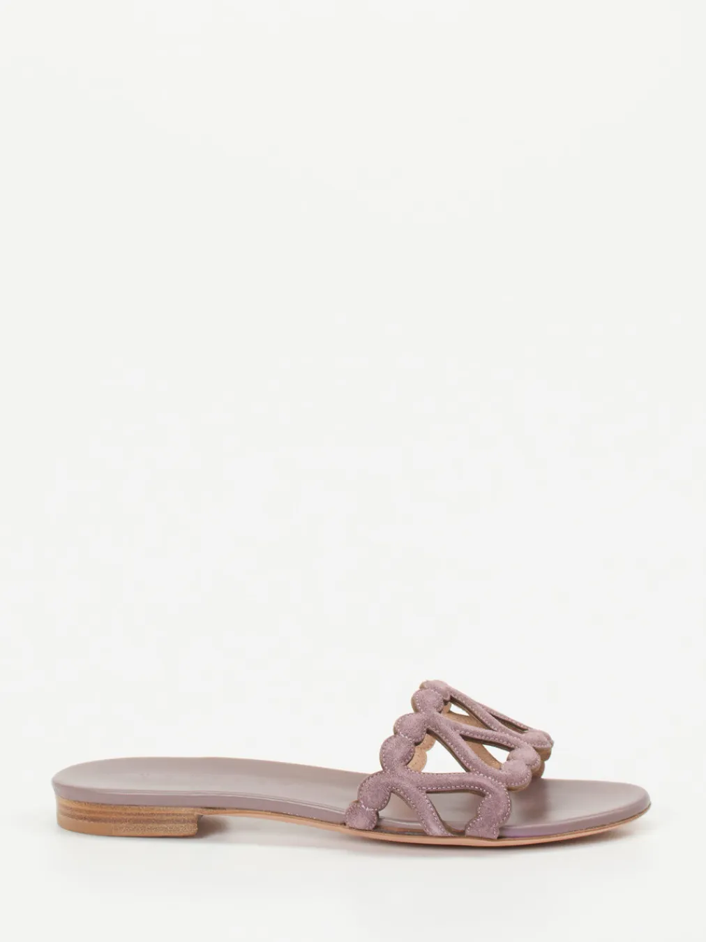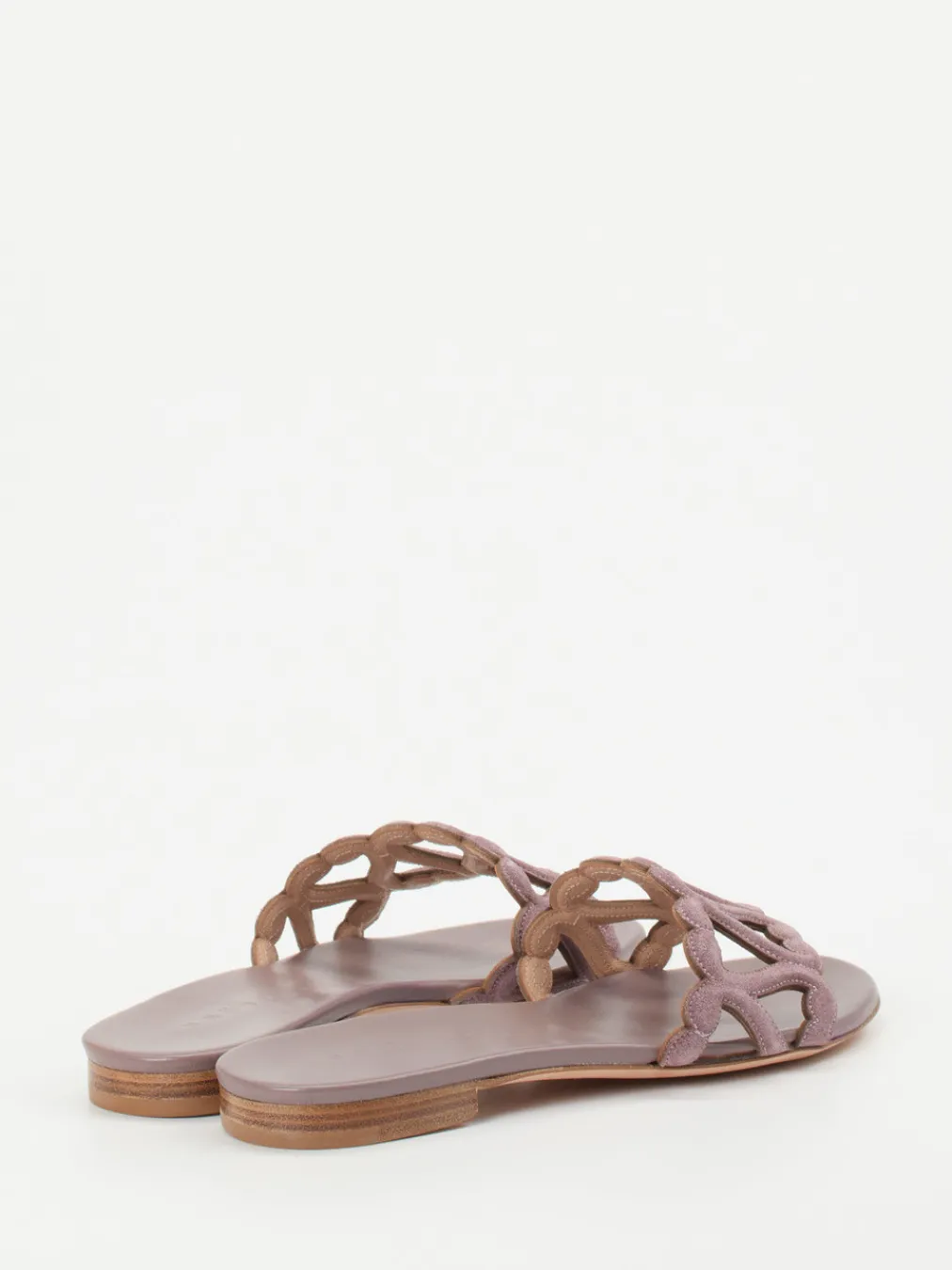 Handwerk in Sommerform.Die Pantolette von Unützer interpretiert klassische Slides mit mediterraner Raffinesse. Ideal für Spaziergänge bei warmem Wetter: Weiches Veloursleder in dunkelveilchenfarbener Altrosa-Nuance trägt sich angenehm leicht und wirkt durch die geschwungenen Cut-Outs besonders edel. Die offene Silhouette mit ornamentaler Riemenkonstruktion steht ganz im Zeichen von Quiet Luxury und artisanal Design – umgesetzt in hochwertiger Handarbeit mit edler Ledersohle. Dezente Naturbraun-Töne akzentuieren den Look. Besonders stimmig zu Leinenkleidern und natürlichen Materialien. Ein Modell für stilbewusste Sommertage mit Unützer-typischer Feinsinnigkeit.