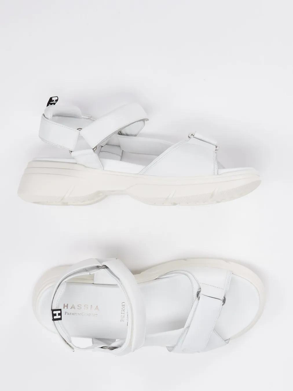 Modischer Komfort für sonnige Tage.Hassia präsentiert mit dieser Sandale ein bequemes Freizeitmodell für Damen. Ideal für Urlaub oder den Alltag in der Stadt: Das glatte Kalbleder in Off-White wirkt dank matter Oberfläche und toniger Nähte besonders edel. Drei gepolsterte Klettverschlüsse sorgen für eine flexible Passform, während die rutschfeste Keilsohle mit Grip-Profil sicheren Halt bietet. Streetwear-inspirierte Details wie breite Riemen und Chunky-Silhouette spiegeln den Comfort-Core-Trend der Saison. Harmonisch mit Oversized-Shirts oder leichten Sommerhosen kombinierbar. Die Marke steht für eleganten Tragekomfort mit besonderem Anspruch an Material und Passform.
