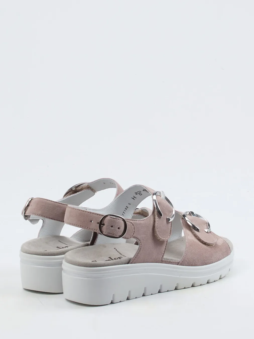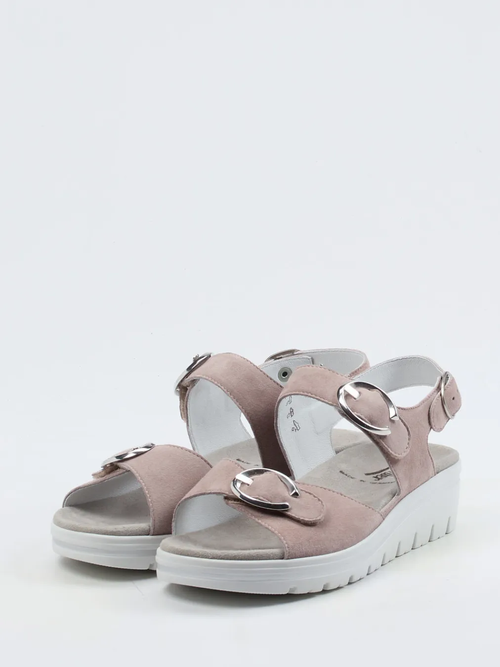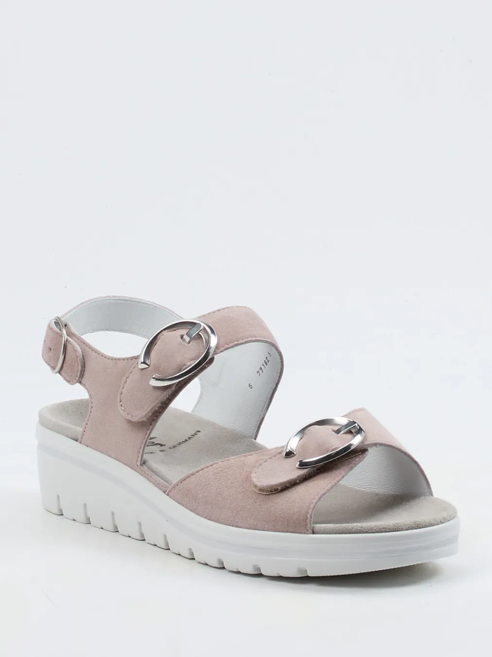 Stilsicher durch den Alltag.Semler präsentiert eine feminine Komfortsandale für die warme Jahreszeit. Die Kombination aus rosébeigem, samtig weichem Veloursleder und einer ergonomisch geformten Keilsohle erfüllt anspruchsvolle Komfortbedürfnisse. Zwei silberfarbene Schnallen erlauben eine individuelle Passform, während die weich gepolsterte, velourslederbezogene Decksohle bei Bedarf durch eigene Einlagen ersetzt werden kann. Die weiße PU-Sohle mit subtiler Profilierung und farblichem Kontraststreifen unterstreicht das minimalistische Design. Ideal für legere Sommeroutfits und entspannte Freizeitmomente. Spürbarer Komfort trifft auf dezente Eleganz – typisch Semler.