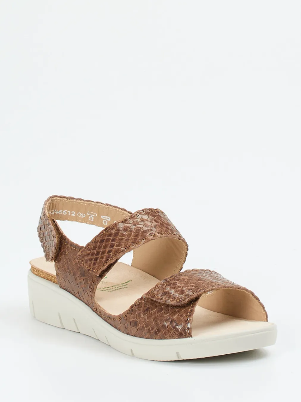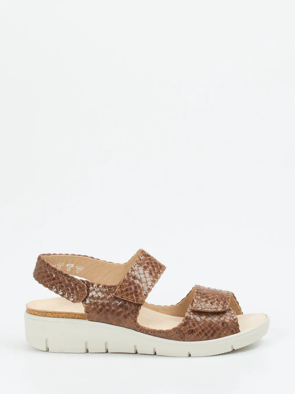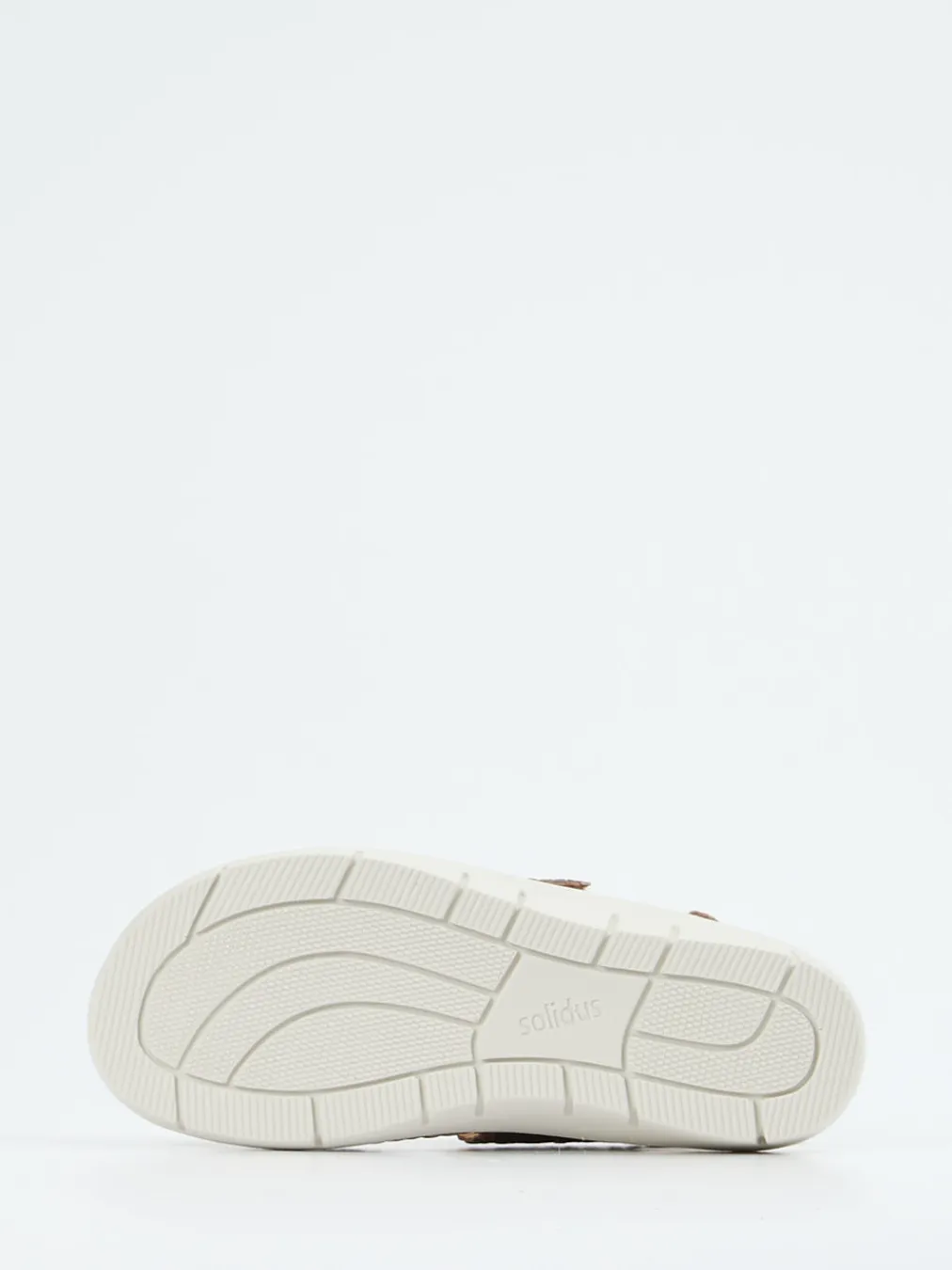 Struktur trifft Komfort.Solidus präsentiert mit dieser Sandalette eine sommerlich inspirierte Komfortlösung für den Alltag. Die Sandale überzeugt in mittelbraunem Flechtleder mit dezenter Schlangenprägung und bietet mit breiten Riemen samt Klettverschluss eine besonders flexible Passform. Die leichte, weiße Synthetiksohle mit ergonomischer Laufhöhe sowie das gepolsterte, austauschbare Fußbett sorgen für angenehmes Gehen – auch barfuß. Die Kombination aus natürlichen Texturen und Ton-in-Ton-Nähten unterstreicht den aktuellen „Quiet Comfort“-Trend. Ideal zu Leinenhosen und hellen Outfits. Solidus steht für kompromisslosen Gehkomfort mit formschönem Design.