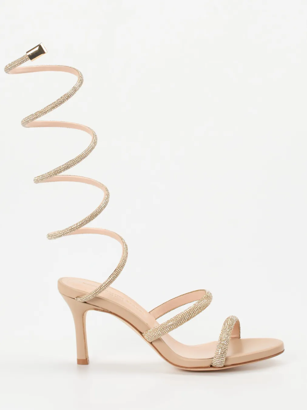 Die filigrane High Heel Sandalette von Konstantin Starke besticht durch spiralförmige Strassriemen und hochwertigen Glanz. Ein stilsicheres Statement für festliche Anlässe.