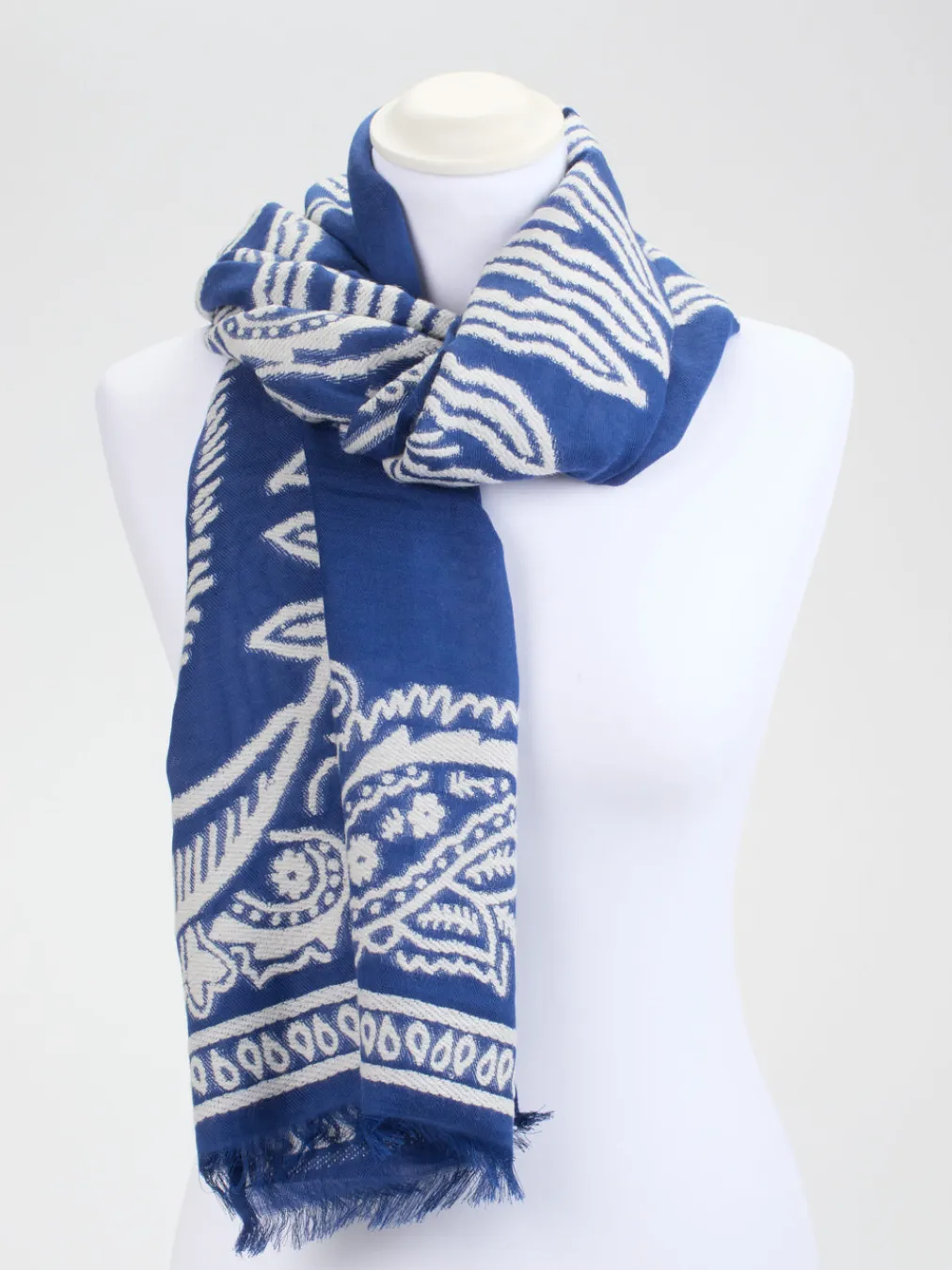 Dieser Schal der Marke Inoui Editions aus einer feinen Wollmischung präsentiert sich in edlem Blauweiß, was sowohl Tiefe als auch Frische ausstrahlt. Die weiche Oberfläche sorgt für ein angenehmes Tragegefühl und macht ihn zum stilvollen Begleiter in der Übergangszeit wie an kühlen Tagen. Das modische Muster zeigt einen Dinosaurier, der von einem Paisley-Muster flankiert wird. Durch sein leichtes Material und das harmonische Farbspiel lässt sich der Schal vielseitig kombinieren – ob zum Mantel, Blazer oder Strickpullover. Ein elegantes Accessoire, das jedem Outfit ein dezentes Statement verleiht. – Weiche, anschmiegsame Wollmischung – Intensives Blauweiß mit eleganter Ausstrahlung – Vielseitig tragbar zu verschiedenen Outfits – Ideal für kühlere Tage und stilvolle Layering-Looks – Material: 45% Wolle, 45% Baumwolle, 10% Acryl – Maße: 70 x 190 cm Zur Pflege empfehlen wir eine schonende Handwäsche mit lauwarmem Wasser. Auf diese Weise bleibt die weiche Struktur erhalten und…
