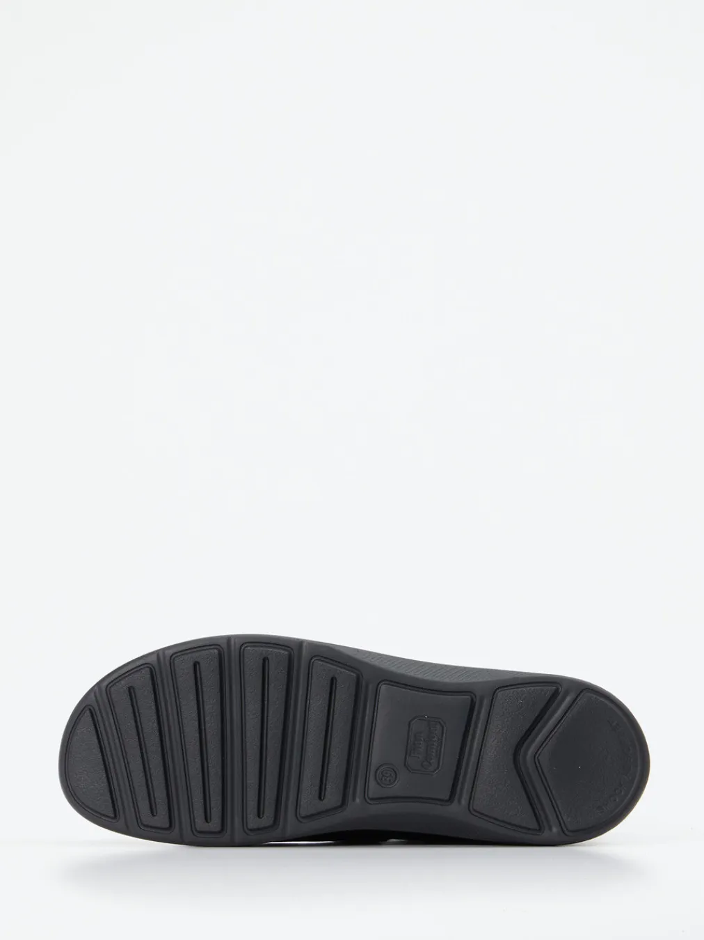 Reduziertes Design für maximalen Komfort.Die Marke Finn Comfort präsentiert diesen Mid-Cut Schnürschuh aus der Komfortlinie. Ideal für entspannte Tage oder längere Spaziergänge, überzeugt das Modell mit schwarzem Nubukleder, das samtig angeschliffen eine matte, hochwertige Haptik bietet. Die runde, knöchelhohe Form mit gepolstertem Einstieg, metallösenbestückter Schnürung und dezenter Markenprägung betont den minimalistisch-funktionalen Ansatz. Eine griffige EVA-Sohle garantiert leichtes Abrollen und stoßgedämpftes Gehen – sogar mit eigenen Einlagen dank herausnehmbarem Korkfußbett. Die ruhige Farbgebung passt zu Softshelljacke und Jeans. Finn Comfort steht hier für ergonomische Alltagstauglichkeit im zeitlosen Look.
