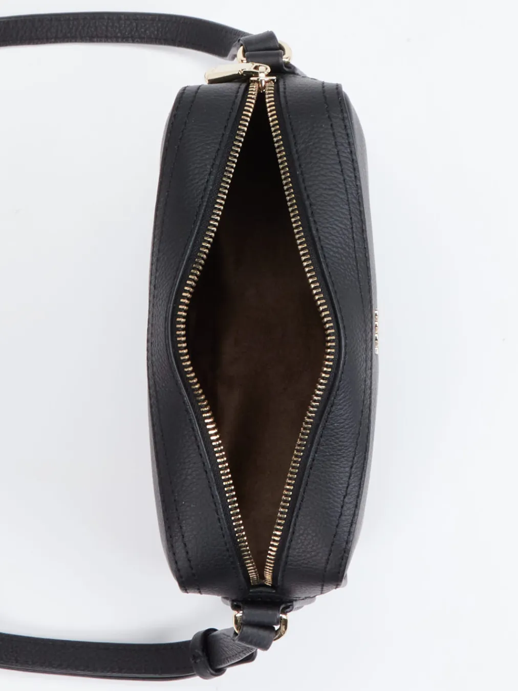 Diese klassisch schlichte Umhängetasche der Marke Hugo Boss ist ein unentbehrlicher Alltagsbegleiter – im Format eines Buches angenehm handlich und doch groß genug, um allen wichtigen Utensilien Platz zu bieten. Das schwarze Lederimitat präsentiert sich fein genarbt. Mit seinem zurückhaltenden Design fügt sich dieses kleine Schmuckstück perfekt in jedes Outfit ein. Im Inneren sorgen zwei zusätzliche Fächer für Übersichtlichkeit, eines der beiden ist mit einem Reißverschluss versehen, um größtmöglichen Diebstahlschutz zu gewährleisten. Dieses zeitlose Accessoire ist klein aber fein! – Obermaterial: Lederimitat – Farbe: Schwarz – Größe: ca. 14 x 20 x 6 cm (H x B x T) – Schulterriemen: max. Länge ca. 120 cm, verstellbar – Innen: ein Reißverschlussfach, ein Steckfach – Verschluss: Reißverschluss
