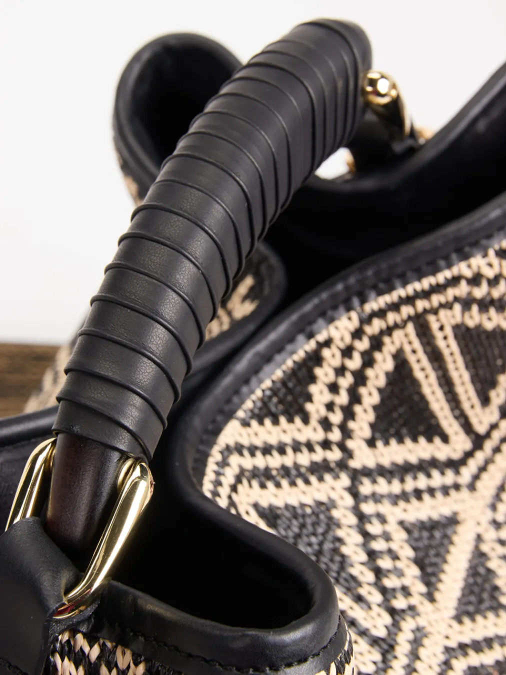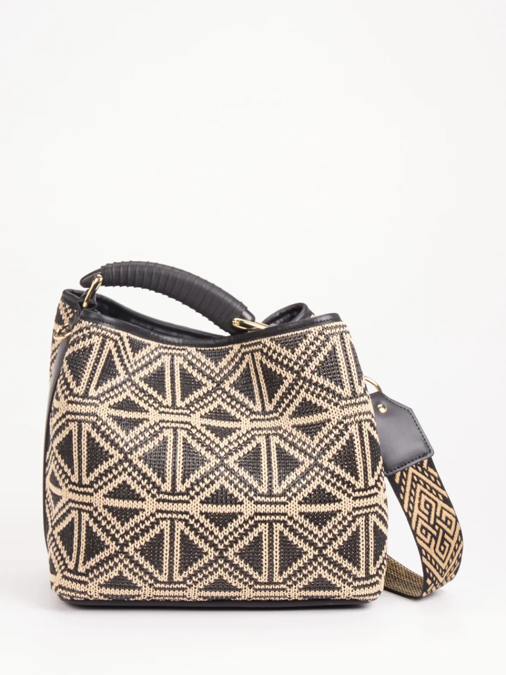 Die strukturierte Schultertasche von Viamailbag vereint sommerliche Leichtigkeit mit raffiniertem Ethno-Charme – ein stilvolles Accessoire für entspannte Looks.