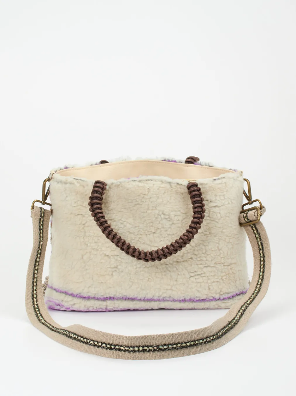 Ein echter Blickfänger ist diese kreative Tasche aus dem Hause Konstantin Starke. Das Teddyfell begeistert durch seinen unkonventionellen Farbmix in Offwhite, Violett und Braun. Die Kordeln am unteren Taschenbereich lassen ein Hauch von Boheme aufleben. Die gehäkelten, schokoladenbraunen Henkel werden von tonigem Flechtleder umwickelt. Das Innere wird durch ein farbenfrohes Blütenmuster belebt. Es enthält ausreichend Platz für all Ihre Essentials. Der bestickte Schulterriemen kann bei Bedarf abgenommen werden. Ein tolles Accessoire, das in Erinnerung bleibt! – Material: Textil – Farbe: Multi – Maße: ca. 25 x 38 x 13 ( H x B x T) – Innen: zwei Reißverschlussfächer – Schulterriemen: ca. 90 cm, abnehmbar, verstellbar