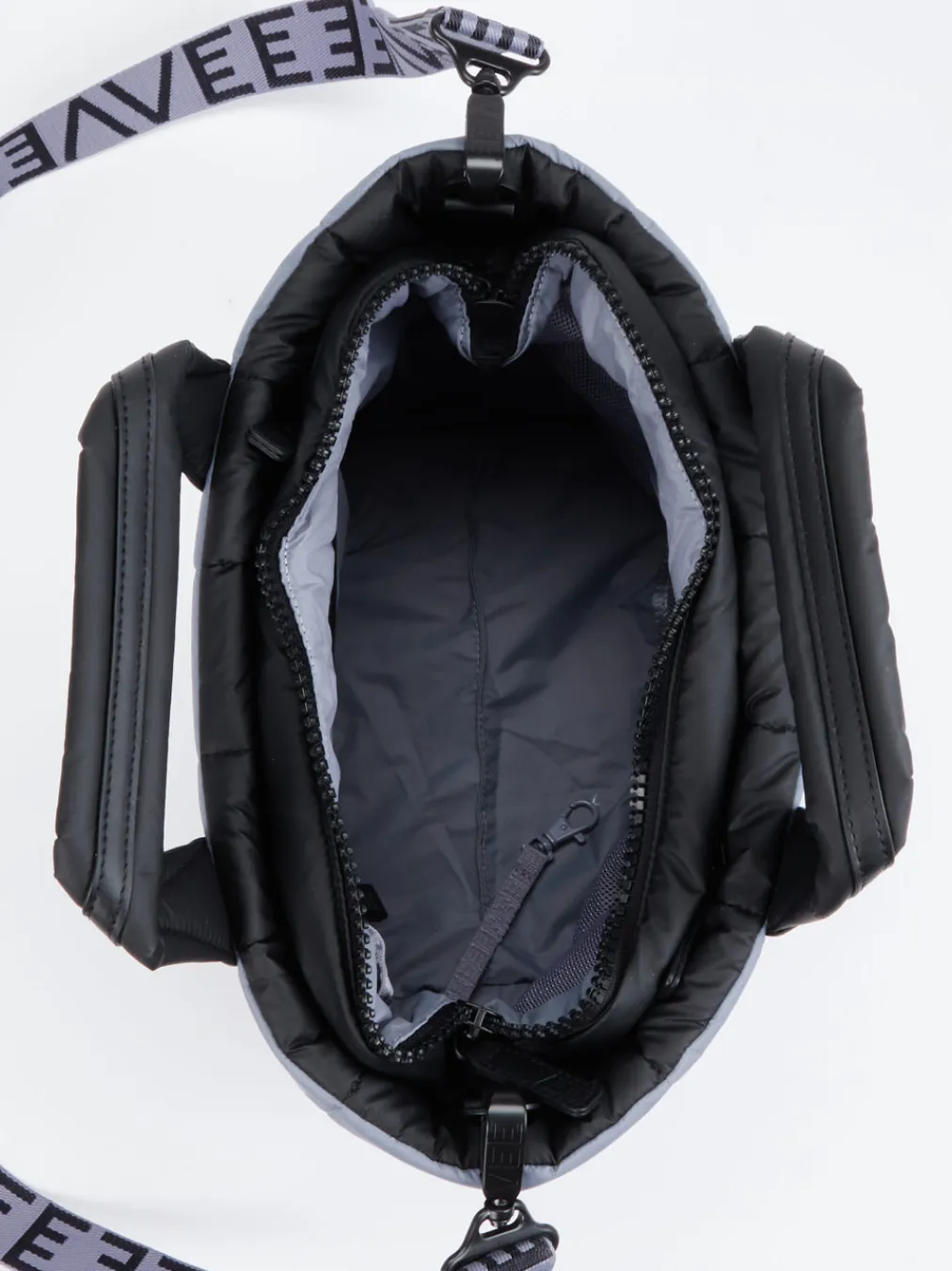 Absolut stylish zeigt sich diese Umhängetasche des Berliner Labels VeeCollective! Das graublaue, recycelte Ripstop Nylon-Obermaterial ist im angesagten Puffer-Trend designt und ist strapazierfähig und wasserabweisend gearbeitet. Die schwarzen Kunstleder-Details verleihen dem sportiven Design eine stilvolle Note. Die wichtigsten Alltagsutensilien lassen sich in den Fächern des Innenraumes ohne Probleme verstauen. Die Tasche ist besonders leicht und mit zwei sportlichen Zippern wasserdicht verschließbar. Ein breiter Textil- Schulterriemen liegt bei. Ein luftig-leichter Begleiter für viele Anlässe! – Obermaterial: Ripstop Nylon – Futter: Textil – Farbe: Grau – Größe: ca. 25 x 38 x 20 cm (H x B x T) – Schulterriemen: max. ca. 130 cm, verstell-und abnehmbar – Henkel: ca. 35 cm – Verschluss: Reißverschluss – Innen: ein Reißverschlussfach, zwei Steckfächer, ein Druckknopffach – Außen: zwei zusätzliche Reißverschlussfächer – Extras: herausnehmbarer Innenbeutel (ca. 18 x 25 cm)
