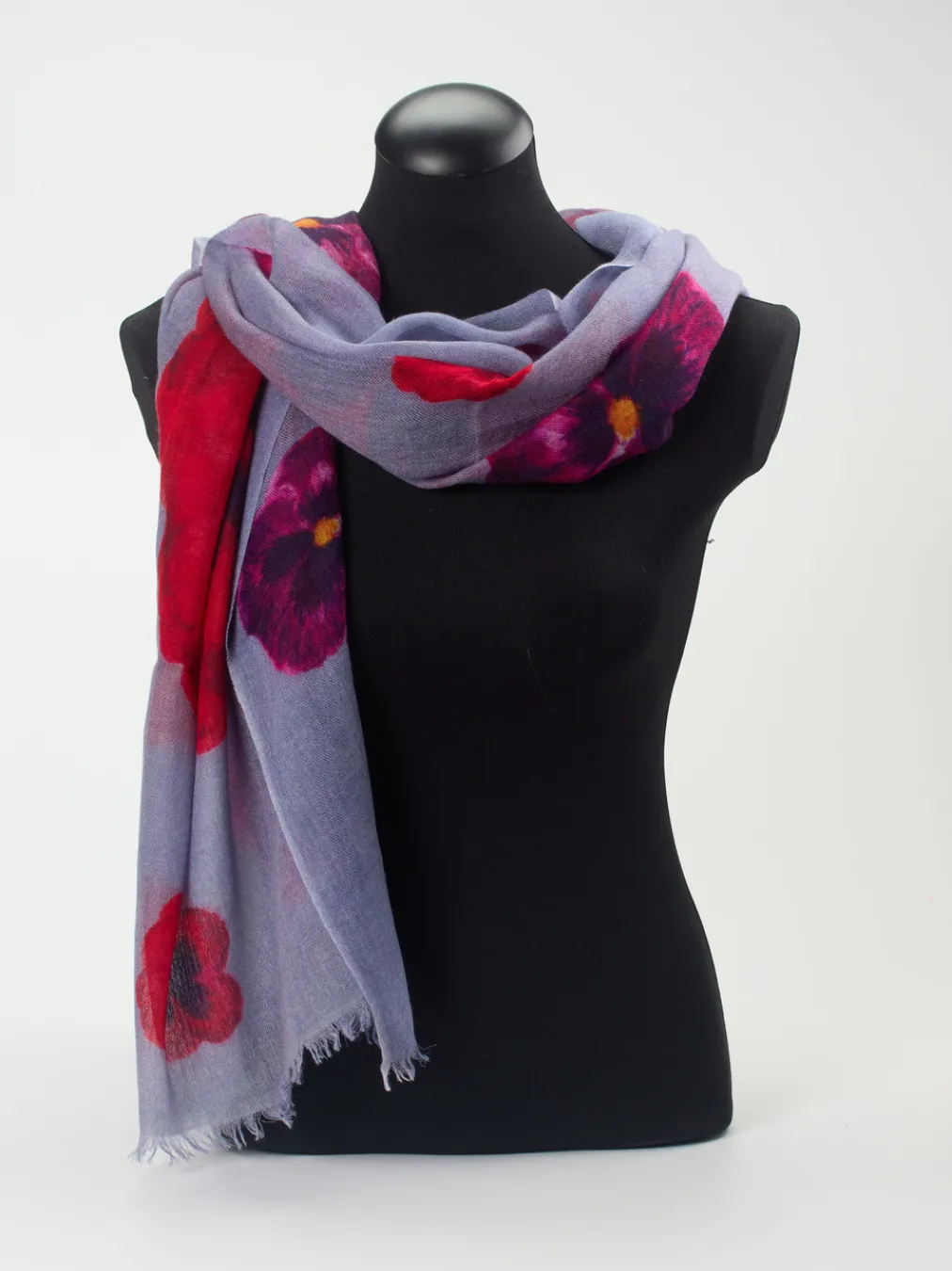 Dieses bezaubernde Tuch kommt von dem Label Cashmere Couture. Gefertigt aus 100% Kaschmir, fühlt sich das Material zart und weich an. Rote und beerenfarbene Stiefmütterchen strahlen auf einem grauen Grund. Die beliebten Blühpflanzen aus der Gattung der Veilchen waren schon im Mittelalter ein Symbol für gute Gedanken. Abgeschlossen wird dieser Look von attraktiven Fransen. Mit diesem Fashion-Piece setzen Sie ein luxuriöses Highlight in Ihrer Garderobe. – Material: 100% Kaschmir – Maße: 220 x 120 cm – Pflegehinweise: Kalte Handwäsche mit mildem Shampoo/ Trockenreinigung – Das Label unterstützt langfristig Frauen in Nepal mit fairen Löhnen. Jedes Tuch ist ein handwerkliches Unikat.