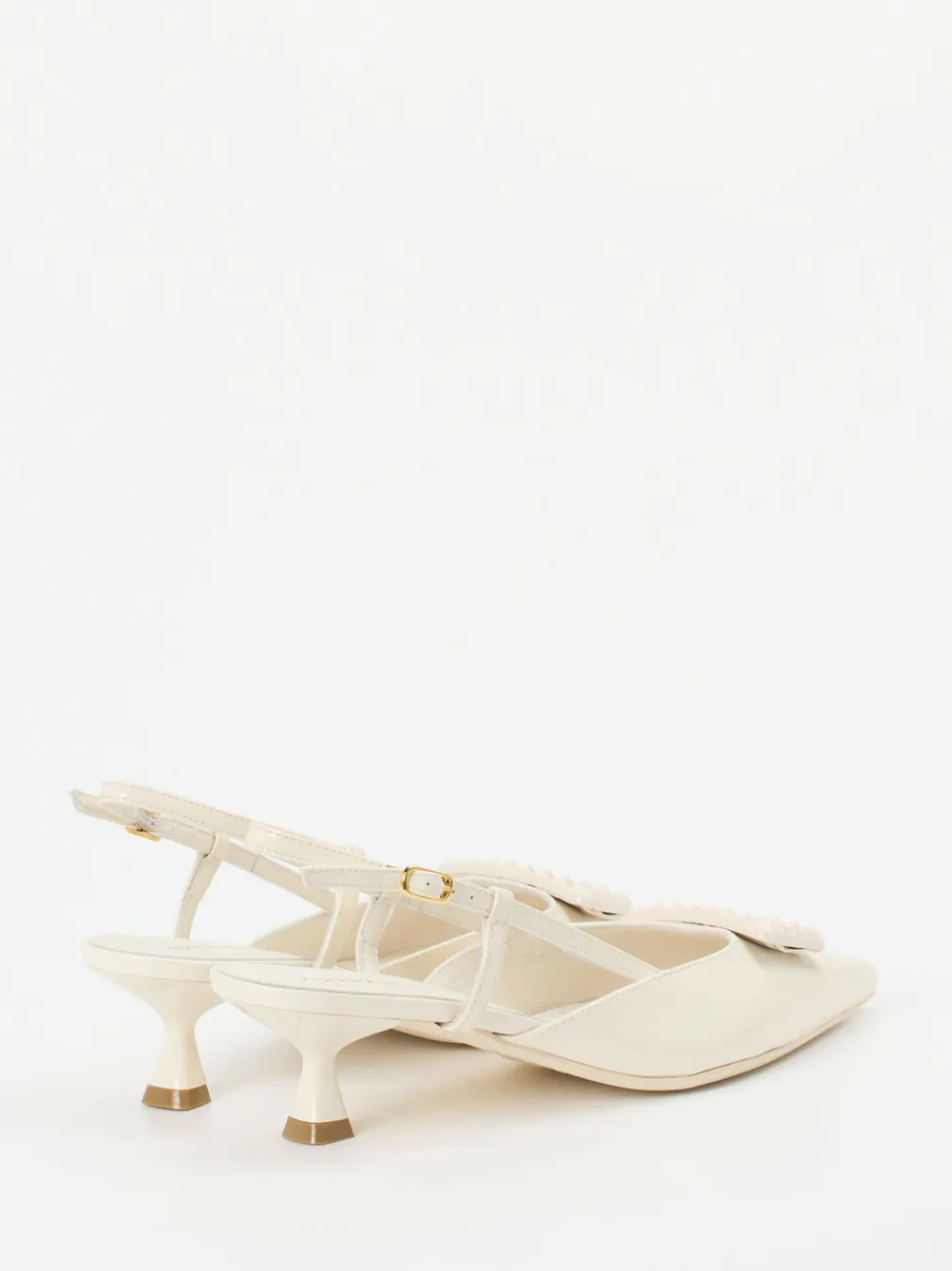 Diese Slingback-Pumps verbinden glänzendes Lackleder mit einer Vintage-inspirierten Kitten-Heel-Silhouette – feminin, reduziert und trendbewusst zugleich.