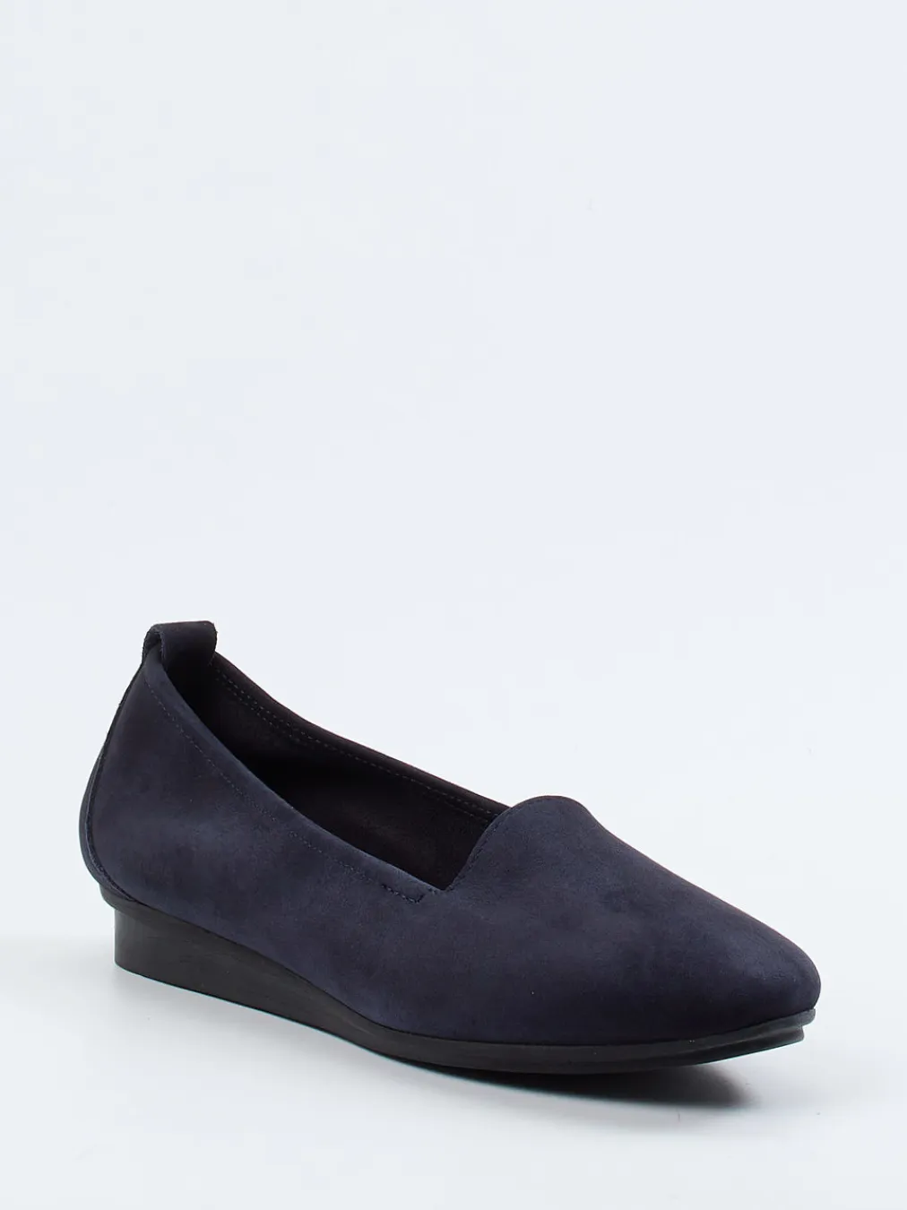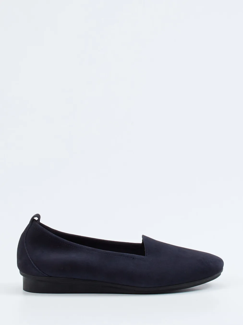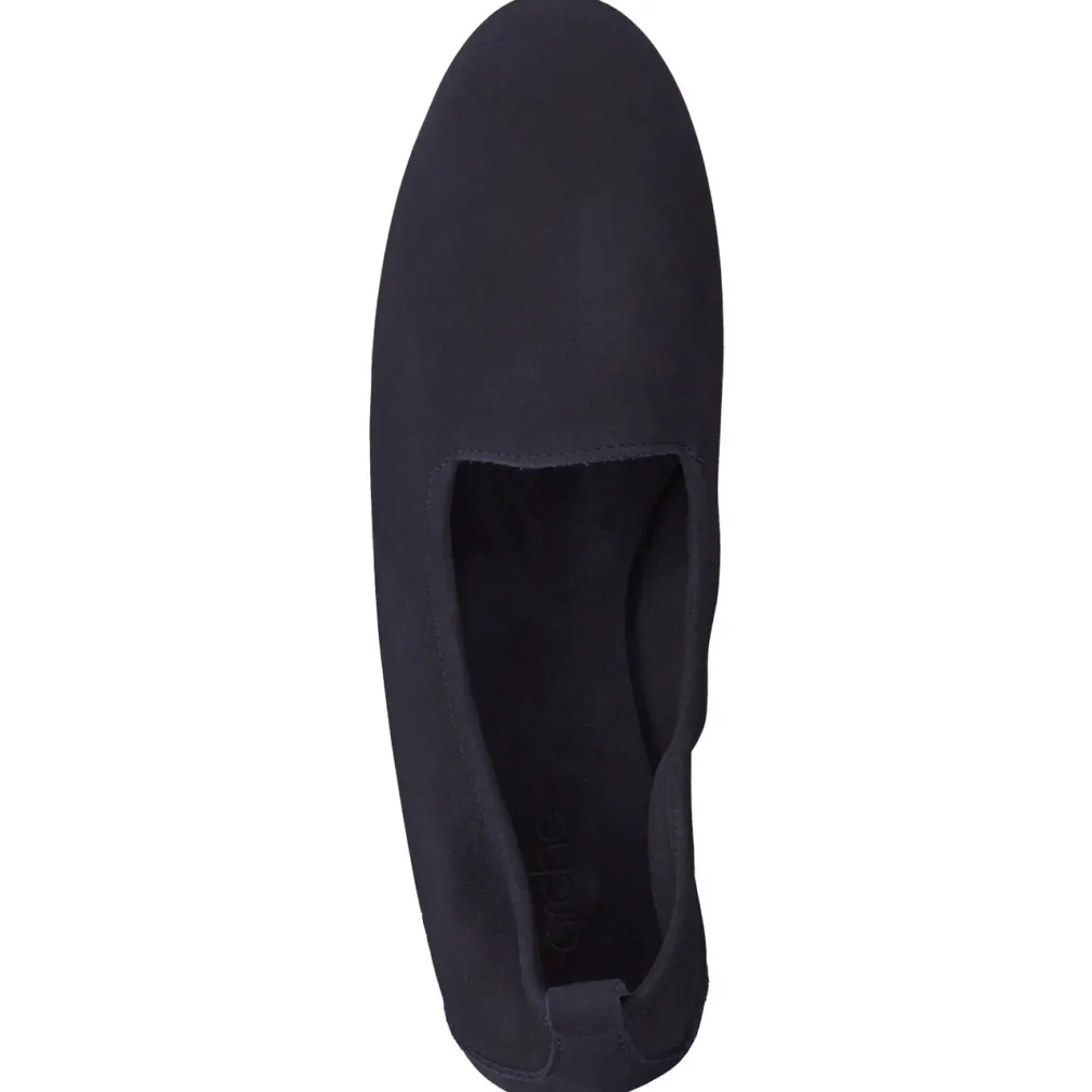 Minimalismus in Bewegung.Der Slipper von Arche verbindet Designqualität mit funktionalem Komfort. Ideal für lange Tage im Büro oder entspannte Wege durch die Stadt: Das ungefütterte Nubukleder fühlt sich samtig an und bietet mit seinem elastischen Einfass Flexibilität. Dunkelblau und matt gehalten, erhält der Slipper durch Ton-in-Ton-Nähte, die Prägung an der Seite und die strukturierte Zuglasche dezente Akzente. Die schwarze, gepolsterte Gummisohle mit Profil sorgt für Rutschfestigkeit und federt leicht ab. Der leicht erhöhte Keilabsatz ergänzt die flache Silhouette um Komfort. Passt besonders gut zu Softshell-Jacke oder minimalistischen Business-Looks. Zeitloser Arche-Komfort mit smartem Anspruch.