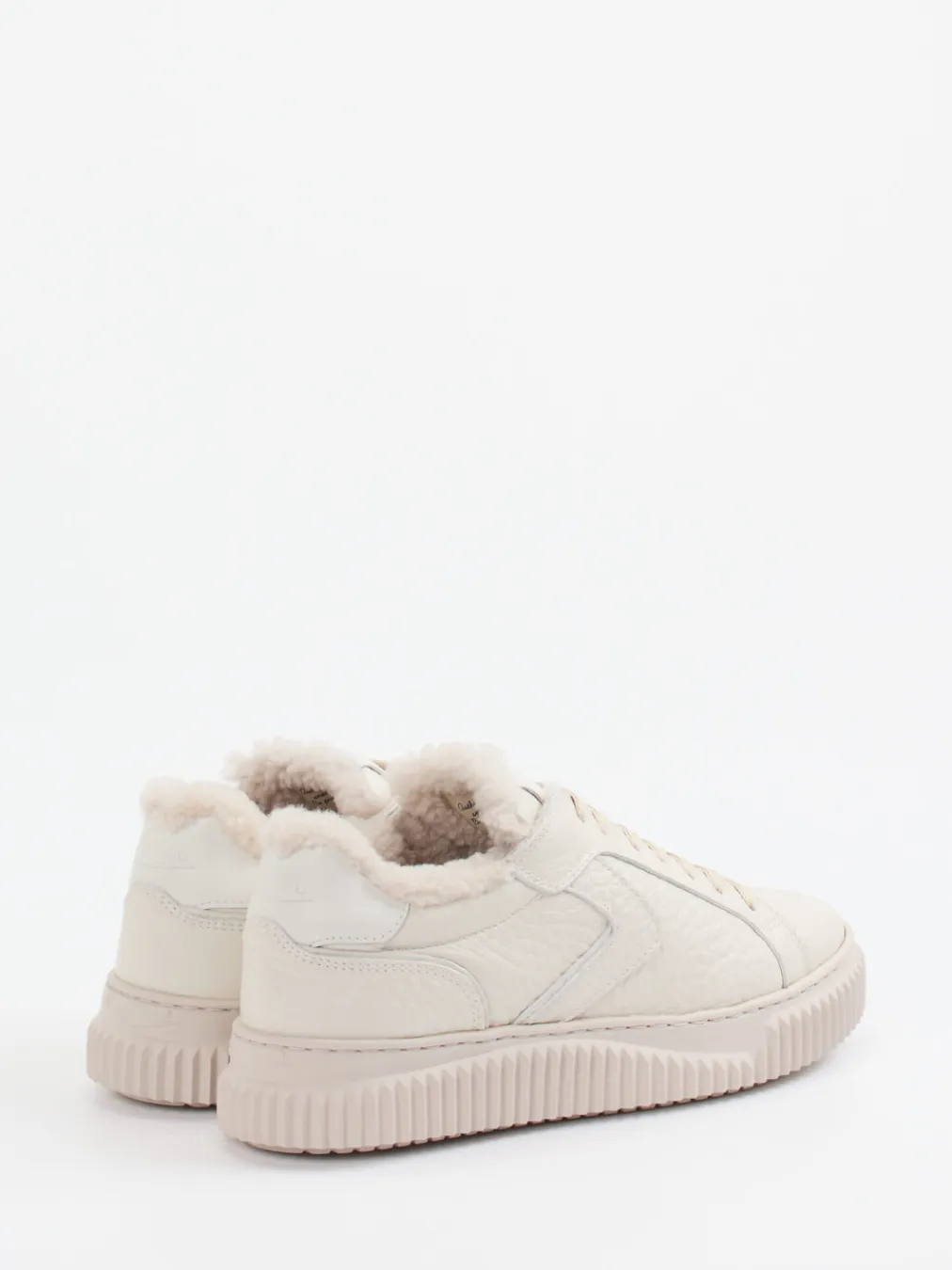 Ob beim Stadtbummel oder auf dem Weg ins Café – das Modell garantiert stilvolle Wärme. Gefertigt aus natürlich genarbtem Kalbleder in einem dezenten Cremeweiß, verbindet es eine klassische Low-Top-Silhouette mit Lammfellfutter und markanter Gummisohle. Die strukturierte Plateau-Profilsohle bietet dabei sicheren Halt und schützt vor Bodenkälte. Details wie Ton-in-Ton-Nähte und eine präzise Schnürung betonen den minimalistischen Anspruch. Dieses Modell zeigt sich trendbewusst im Tonal Layering-Stil der Saison.