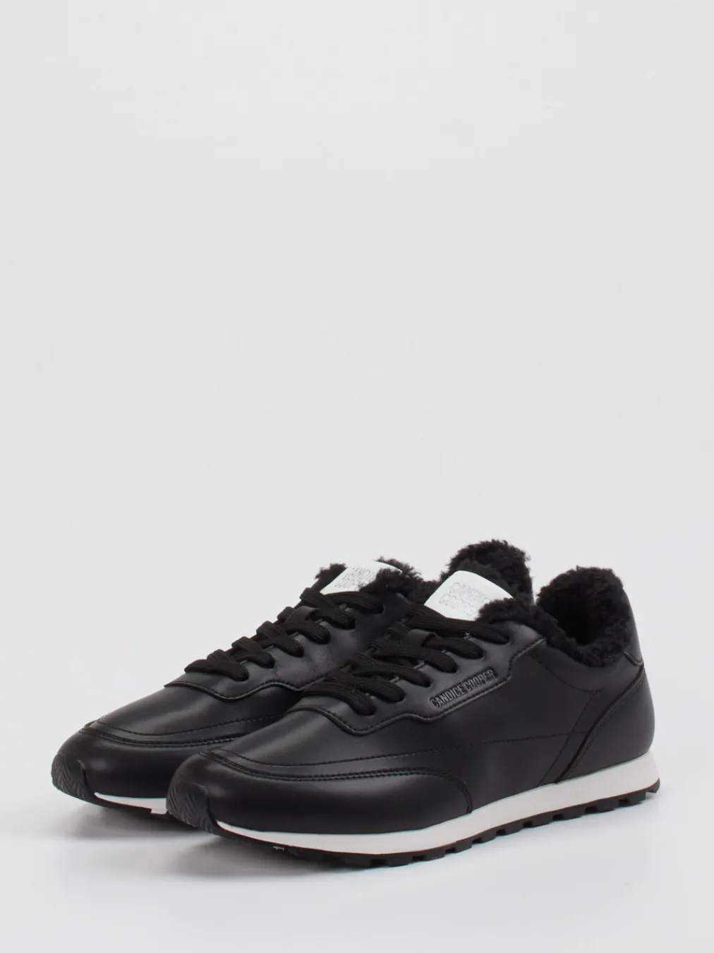 Der gefütterte Lederimitat-Sneaker von Candice Cooper kombiniert klassische Silhouette mit dezenter Streetwear-Ästhetik – ideal bei Kälte. Kontrastsohle und Markenprägung setzen grafische Akzente.