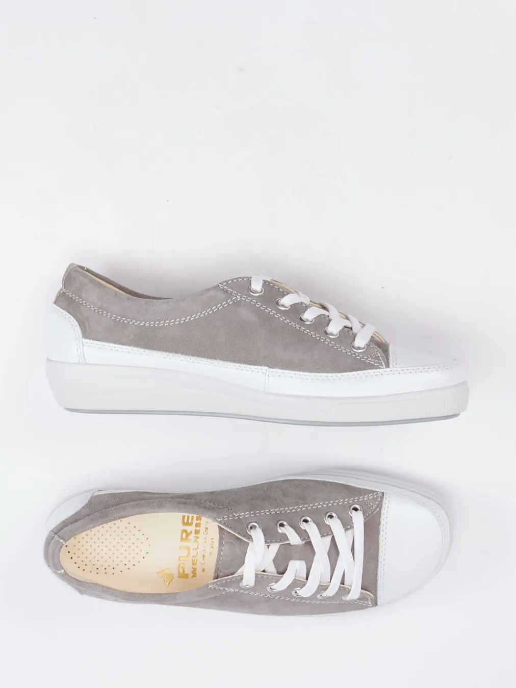 Schlichtes Design trifft Komfortfunktion.Christian Dietz präsentiert einen Damen-Sneaker für entspannte Alltagslooks. Ob beim Stadtbummel oder auf dem Arbeitsweg – dieser graue Low-Top überzeugt in weichem, gebürstetem Veloursleder mit ergonomischer Gummisohle. Die weiße Kappe, Kontrastnähte und die klassische Rundform verleihen dem Modell eine moderne Klarheit. Die besonders komfortable H-Weite, das antibakterielle Innenfutter sowie das gepolsterte, herausnehmbare 3-Zonen-Fußbett bieten idealen Halt. Minimalistische Anmutung trifft auf funktionale Details, die in der zeitgemäßen Casualwear besonders im Trend liegen. Harmoniert ideal mit hellen Jeans oder fließenden Stoffen. Markentypischer Komfort mit dezent femininer Note.