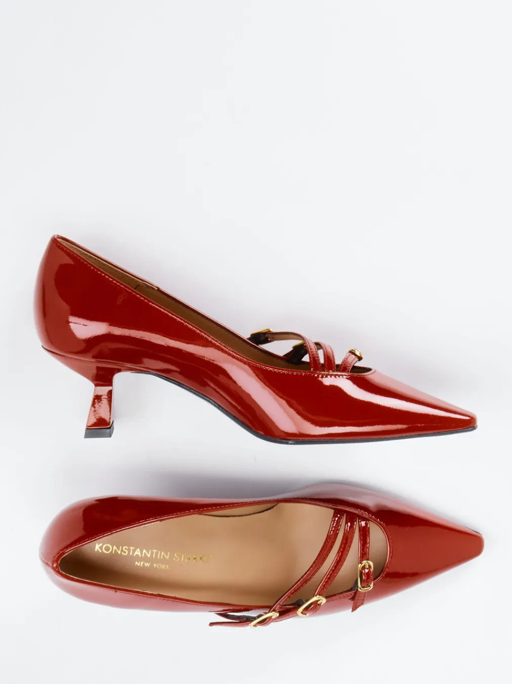 Glanzstück für festliche Stunden.Spangenpumps von Konstantin Starke verbinden femininen Chic mit Retro-Flair. Für besondere Anlässe bieten diese dunkelroten Pumps eine stilvolle Kombination aus glänzendem Lackleder, klassisch spitz zulaufender Form und dekorativen Riemchen mit goldfarbenen Schnallen. Der geschwungene Kitten-Heel sorgt für stilvolle Höhe bei angenehmer Laufhöhe. Das hochwertige Lederfutter sowie ein gepolstertes Fußbett stehen für Komfort mit Anspruch. Inspiriert vom Vintage-Stil der 90er zeigen sich diese Pumps als souveränes Statement zu Seidenkleid oder Metallic-Clutch. Markentypische Eleganz mit komfortabler Raffinesse.
