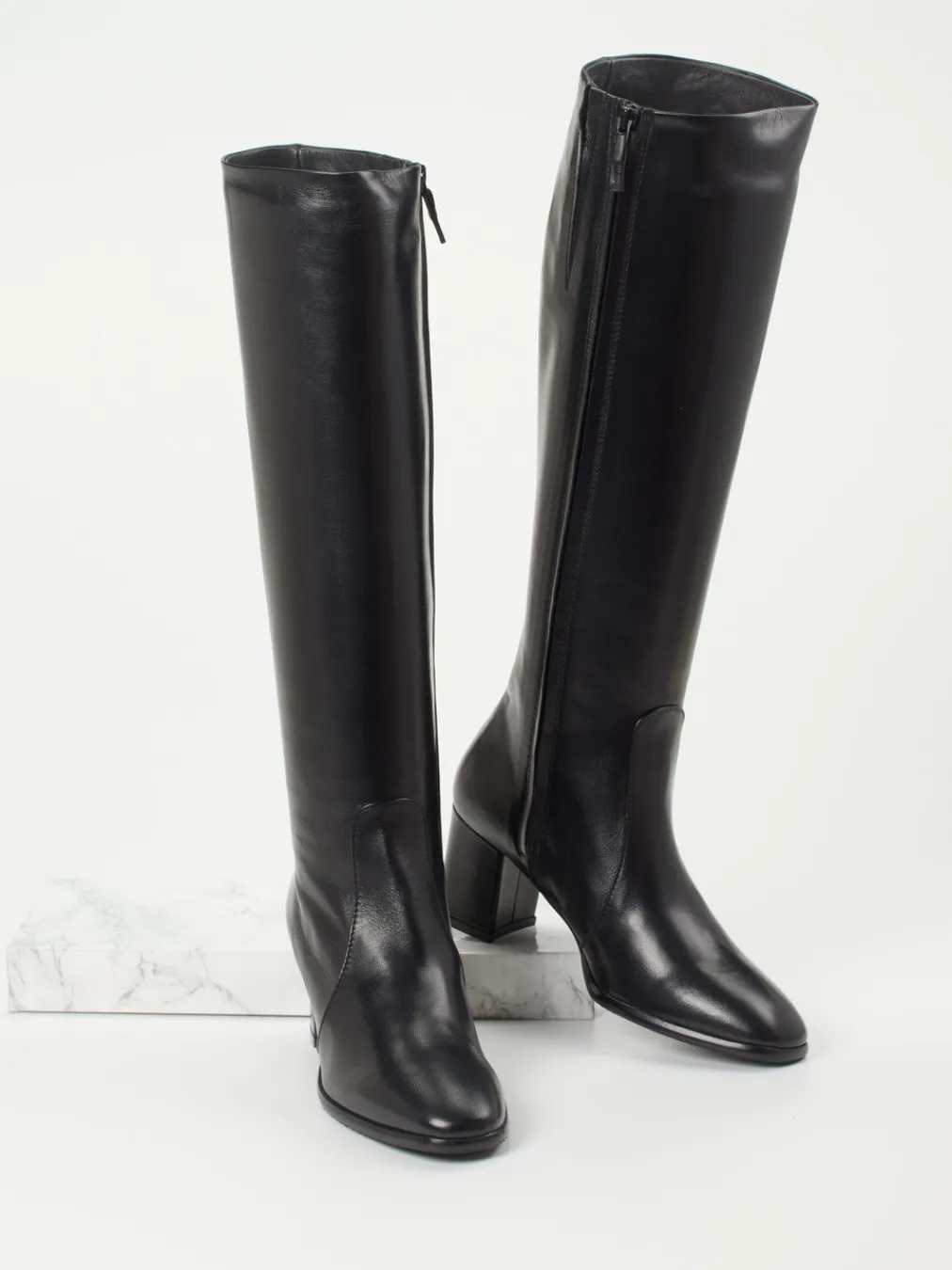 Ideal für formelle Anlässe oder urbane Business-Looks überzeugt das Modell durch seine glatte, leicht glänzende Oberfläche in edlem Schwarz. Der seitlich verdeckte Reißverschluss sorgt für eine schlanke Silhouette bei gleichzeitig hoher Alltagstauglichkeit. Ein 6 cm hoher Blockabsatz unterstreicht den femininen Charakter, während das gepolsterte Lederfußbett und das schwarze Innenfutter aus Ziegenleder für Tragekomfort sorgen. Im Look trifft minimalistischer Chic auf Retro-70s-Stil und passt zu Kaschmirmantel oder Midikleid.