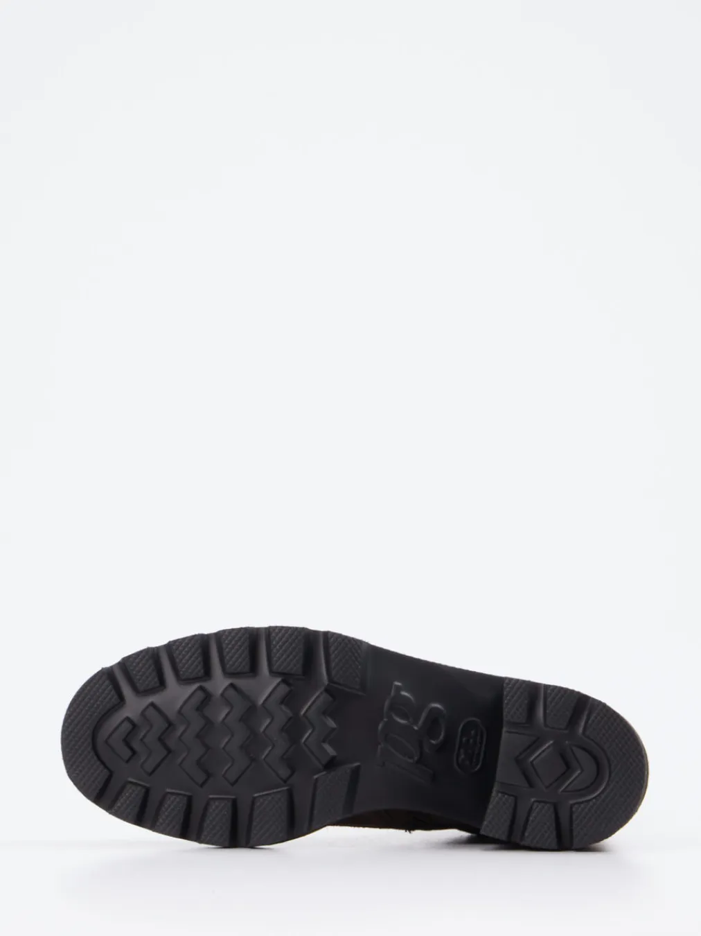 Diese Schnürstiefelette von Paul Green vereint samtig weiches Veloursleder mit markanter Profilsohle zu einem robusten Herbstmodell. Der gestrickte Schafteinsatz verleiht dem Utility-Stil eine moderne Note.