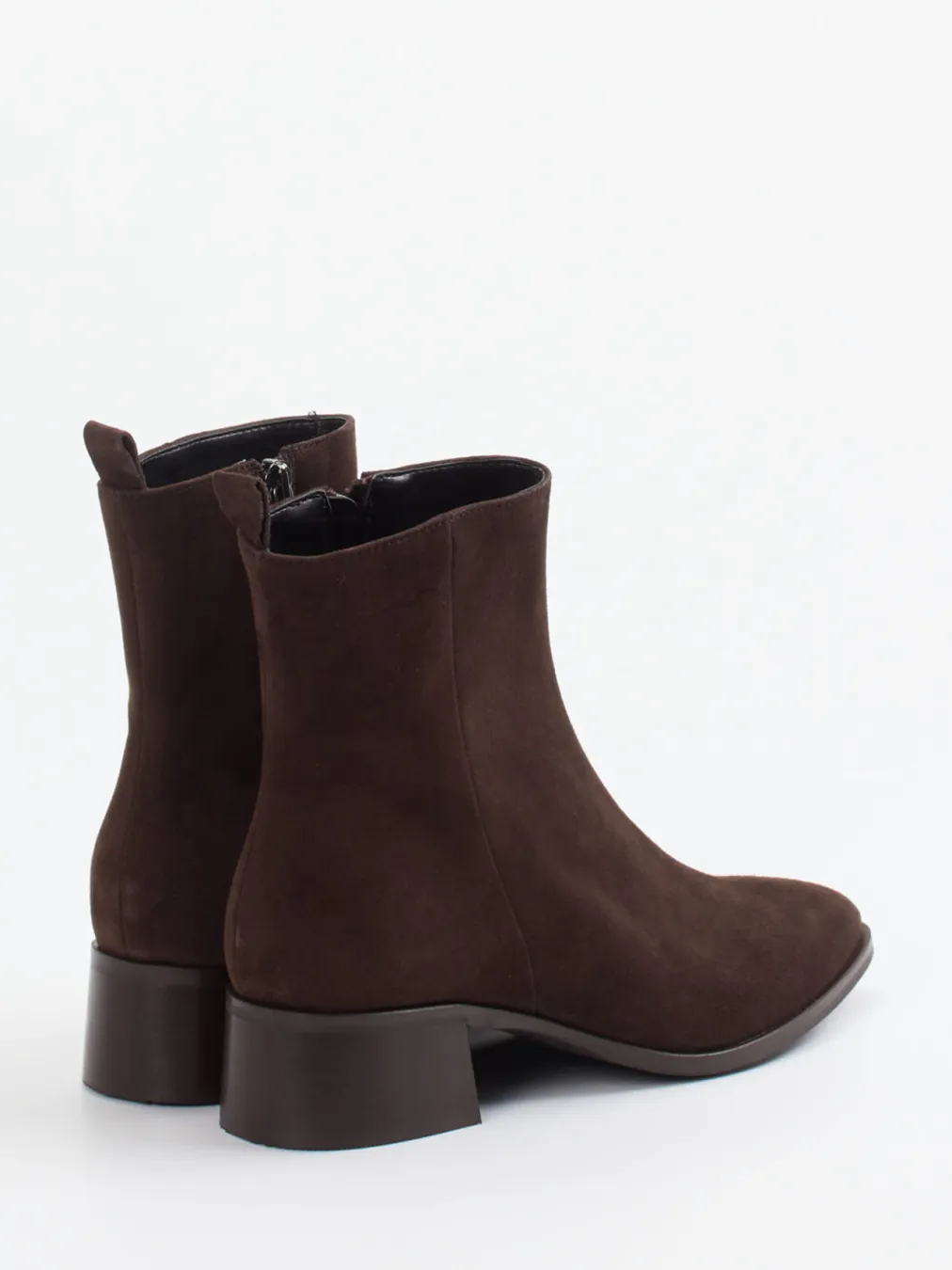 Diese Ankle Boots aus samtigem Veloursleder vereinen dezente Eleganz mit moderner Klarheit – ideal für stilbewusste Looks im Büro oder Alltag.