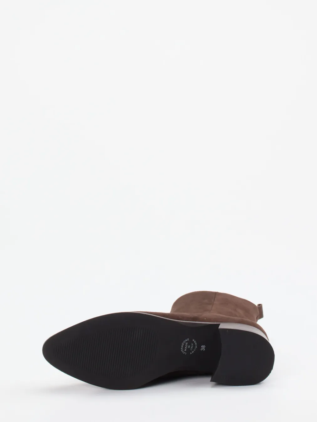 Feine Linien, dezenter Auftritt.Andrea Puccini präsentiert elegante Stiefeletten für Damen aus hochwertigem Veloursleder. Der tiefbraune Farbton und die samtig matte Oberfläche unterstreichen die klassische, schmale Silhouette mit zugleich urbanem Charakter. Durch den dezenten Reißverschluss mit Metalloptik und die 4 cm hohe Gummisohle mit rutschhemmender Struktur entsteht ein funktionales Design mit klarer Formensprache – inspiriert vom Trend „Quiet Luxury“. Die 15 cm hohe Schaftform mit Zuglasche eignet sich bestens für stilvolle Business- oder Casual-Outfits. Kombiniert mit hellen Wollstoffen entsteht ein spannender Kontrast. Ein puristisch stilvoller Begleiter mit kompromissloser Verarbeitungsqualität.