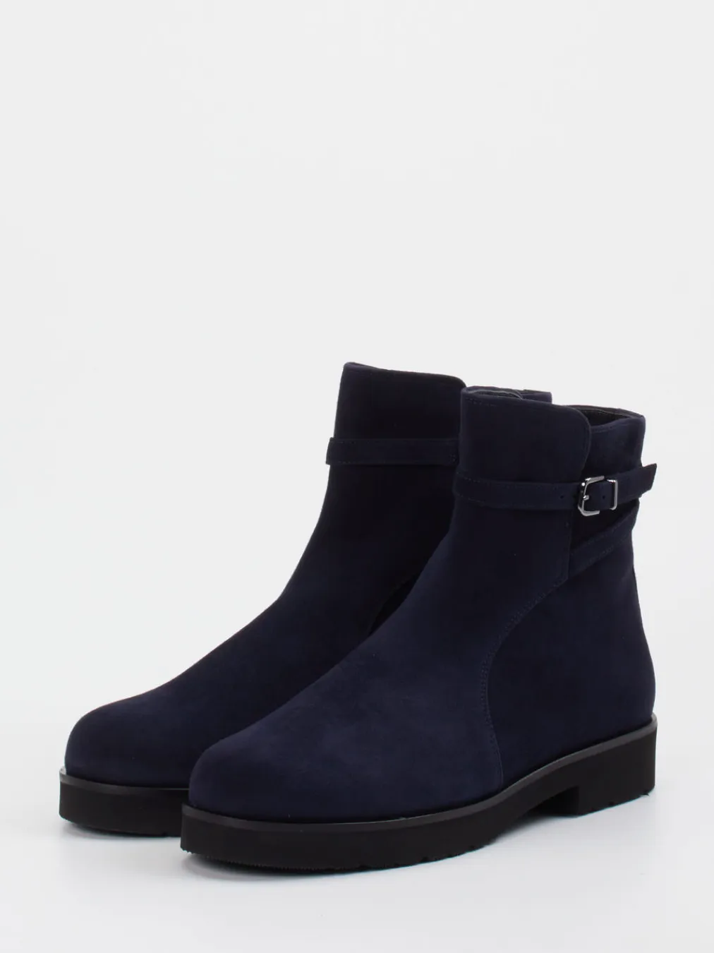 Eleganz in urbanem Tiefblau.Hassia bringt mit dieser Stiefelette eine stilvolle Damen-Stiefelette für kühlere Tage ins Spiel. Ob im Büro oder bei Spaziergängen durch die Stadt – das samtig angeschliffene Veloursleder in tiefem Dunkelblau überzeugt durch seine haptische Tiefe und visuelle Ruhe. Die knöchelhohe Form mit seitlichem Reißverschluss kombiniert klassischen Minimalismus mit praktischer Alltagstauglichkeit. Ein dekorativer Riemen mit silberfarbener Schnalle und profilierte Gummisohle runden das Design harmonisch ab. Die bequeme H-Weite und das Lederfutter machen die Stiefeletten besonders komfortabel. Ein zuverlässiger Begleiter mit urbaner Ästhetik und fein ausbalancierter Funktionalität.