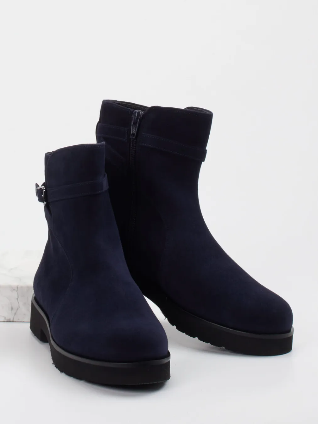 Eine elegante Ankle Boot-Silhouette trifft auf hochwertiges, samtig mattes Veloursleder – ideal für stilbewusste Komfortliebhaberinnen im Alltag und Büro.