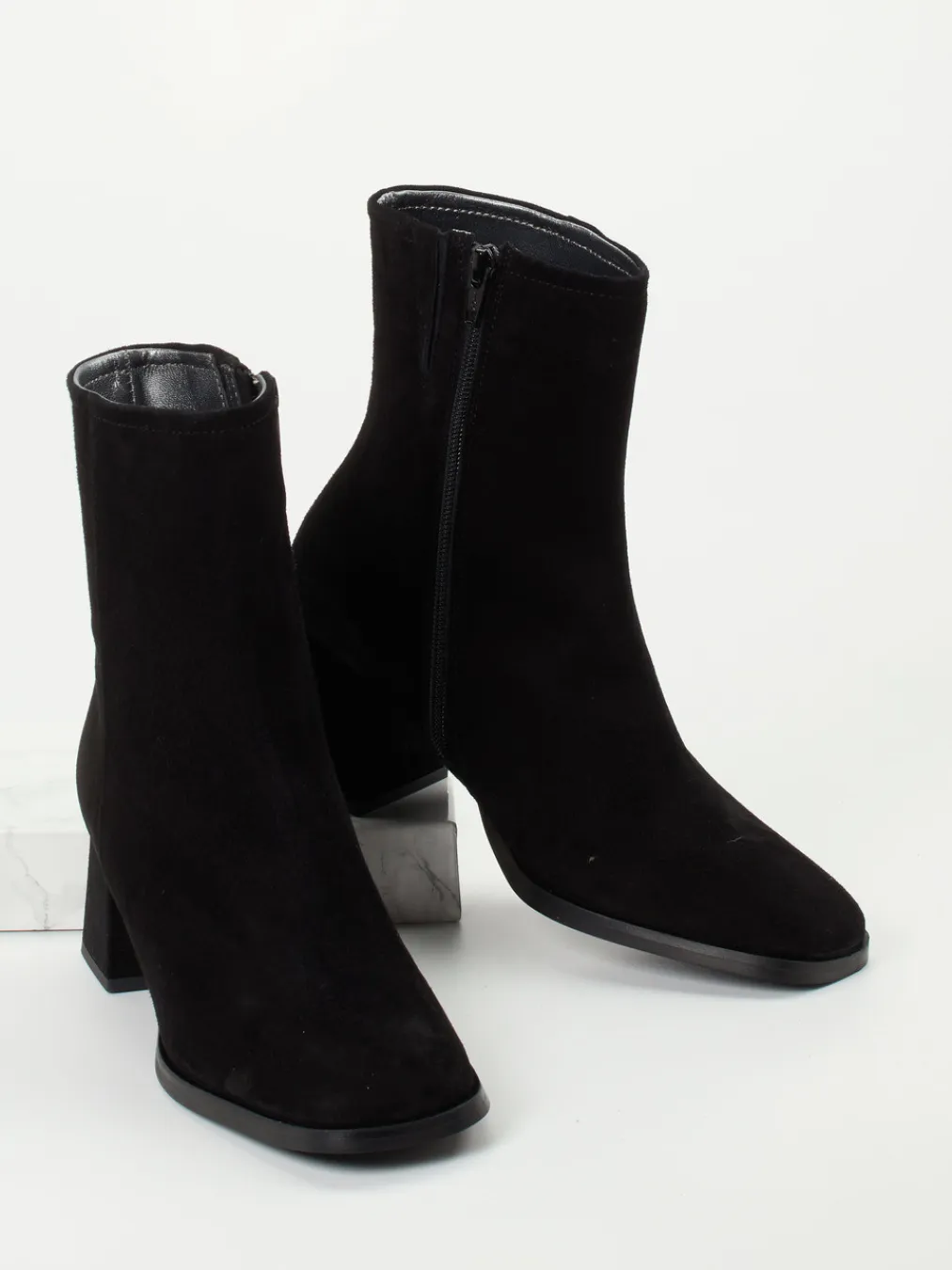 Für stilbewusste Herbsttage oder einen souveränen Businessauftritt bietet das schwarze Veloursleder – samtig-matt in der Optik – die perfekte Grundlage. Die gerade Silhouette mit leichtem Schaftverlauf wird durch einen Ton-in-Ton Reißverschluss ergänzt, der zusammen mit einem Elasteinsatz für idealen Sitz sorgt. Die profilierte Gummisohle mündet in einen stabilen Blockabsatz mit angenehmer Laufhöhe. Innen überzeugt ein Kalblederfutter mit gepolstertem Fußbett. Besonders passend zum „Quiet Luxury“-Trend harmoniert das Modell mit einem Kaschmirmantel oder einer Lederhandtasche in Schwarz.