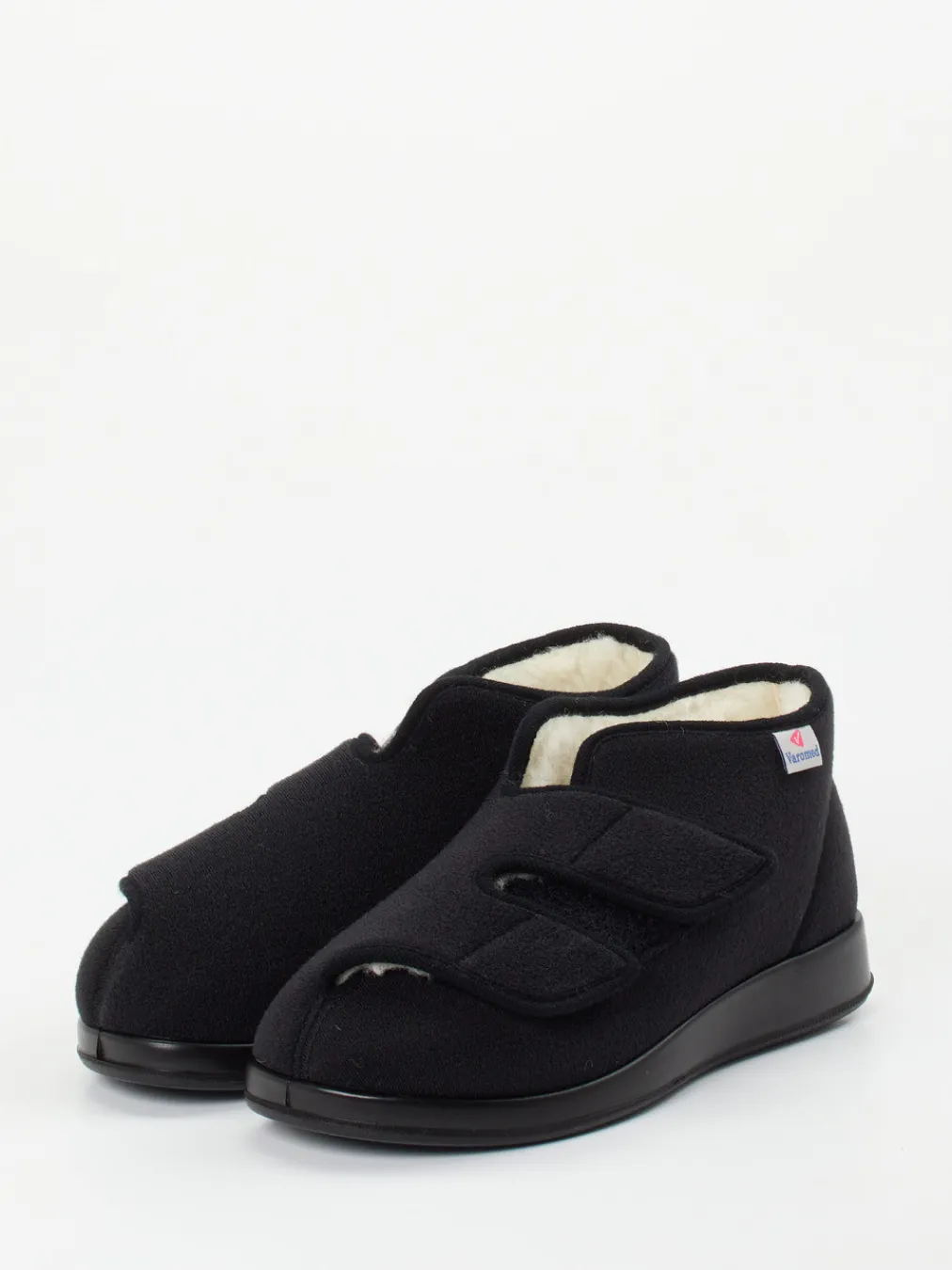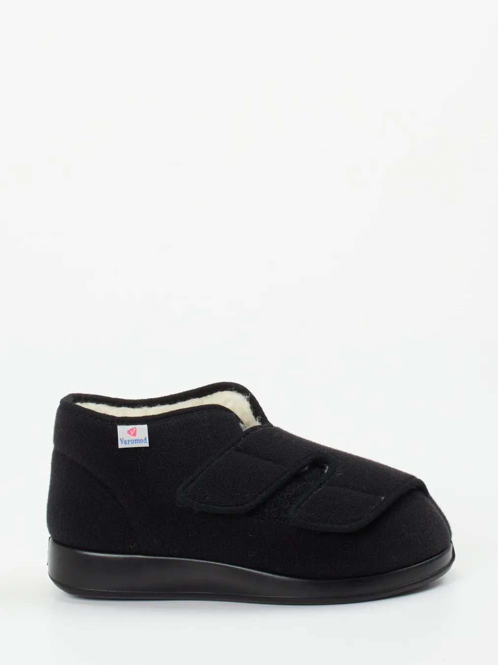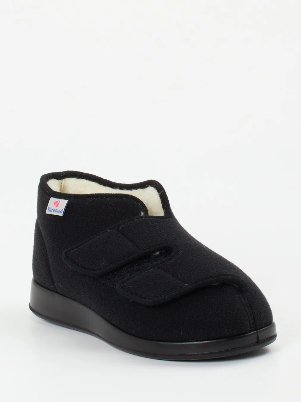 Wärmender Komfort bei jedem Schritt.Varomed steht für passformorientierte Hausschuhe mit durchdachtem Komfort. Dieses geschlossene Thermomodell ist perfekt für kalte Tage und bietet Schutz sowie Halt im Alltag. Das schwarze Obermaterial aus weichem Textil in Filzoptik schmiegt sich angenehm an den Fuß. Dank der knöchelhohen Form mit breitem, integriertem Klettverschluss ist der Einstieg erleichtert – auch bei eingeschränkter Mobilität. Innen sorgt ein durchgehendes Futter aus Lammwolltextil für wohlige Wärme. Die robuste PU-Sohle mit leichtem Profil eignet sich ideal für glatte Böden. Dieses Modell passt hervorragend zu entspannten Outfits wie Hausanzug oder Wollsocken. Für Alltagstauglichkeit mit funktionaler Wärme – typisch Varomed.