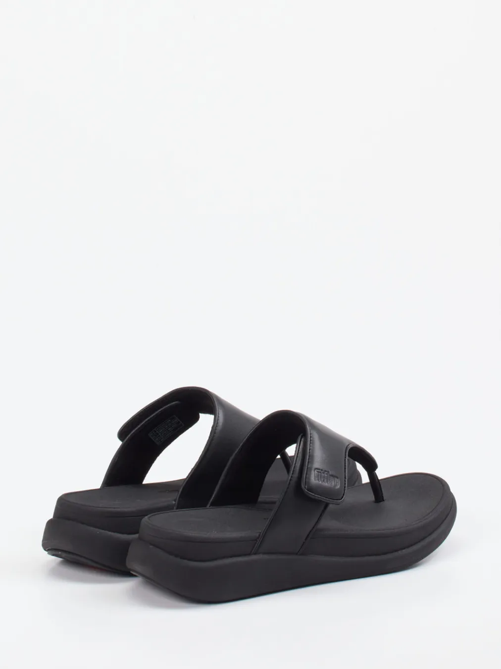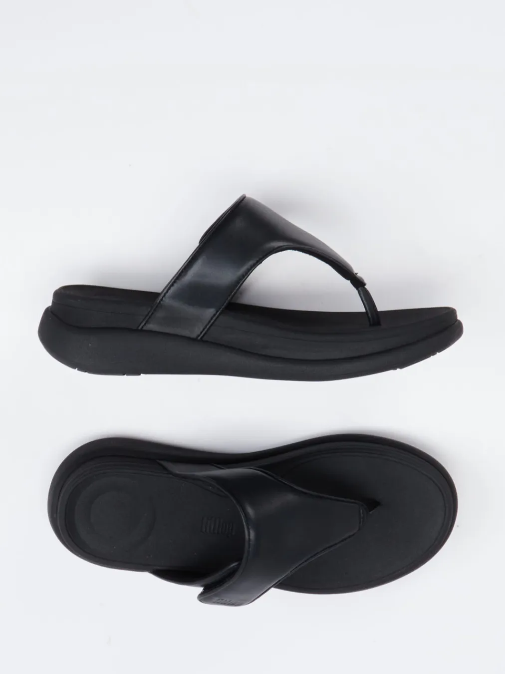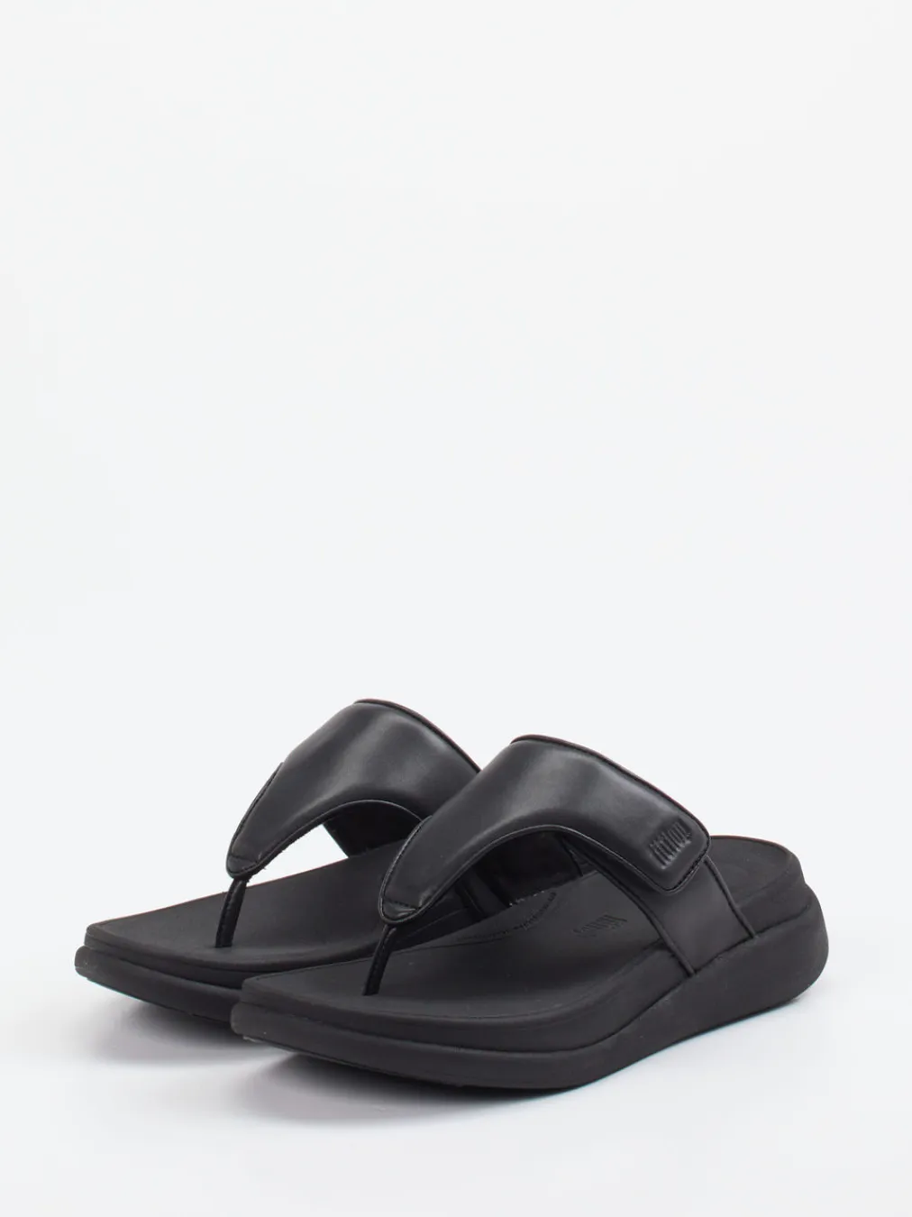 Komfort trifft reduziertes Design.Die Damen-Zehentrenner von FitFlop verbinden Minimalismus mit funktionalem Tragekomfort – ideal für sonnige Alltagsmomente oder entspannte Urlaubsstunden. Dank ergonomischer Zwischensohle mit Microwobbleboard-Technologie bietet das Modell spürbare Fußunterstützung auf Schritt und Tritt. Kalbleder mit matter Oberfläche sowie ein gepolsterter Riemen sorgen für ein softes Hautgefühl. In tiefem Schwarz gehalten, wirken die Sandalen clean und vielseitig kombinierbar – dezent akzentuiert durch ein zurückhaltendes Ton-in-Ton Branding und einen subtilen roten Punkt an der Laufsohle. Inspiriert vom „Quiet Luxury“-Trend, passen sie sowohl zu luftigen Sommerhosen als auch relaxten Loungewear-Looks. Typisch FitFlop: innovatives Design, das Form, Funktion und Komfort nahtlos vereint.