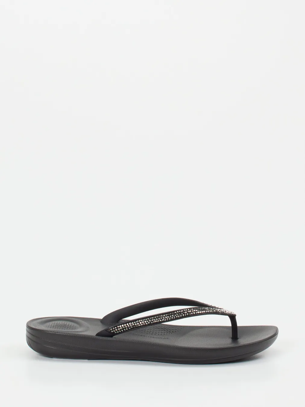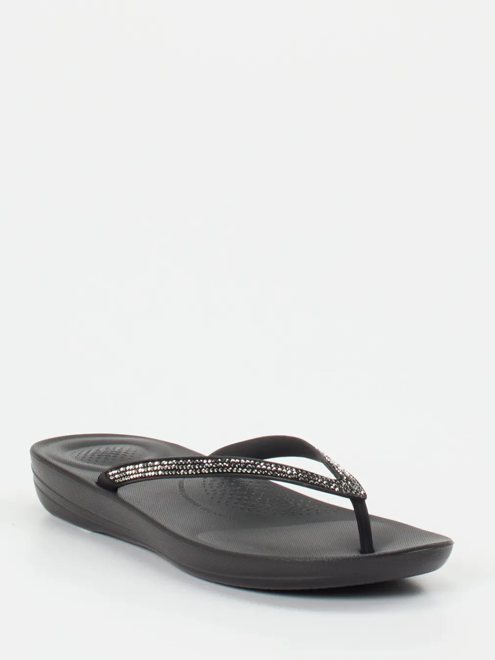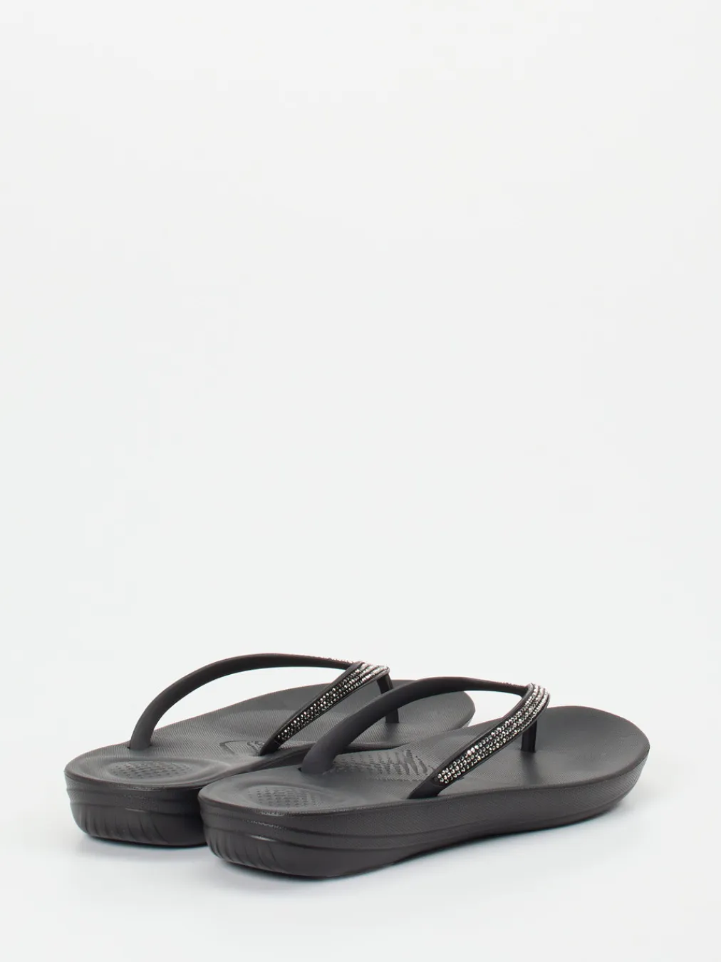 Der ergonomisch gestaltete Zehentrenner von FitFlop vereint sommerlichen Komfort mit dezentem Luxus und überzeugt durch funkelnde Strassdetails im minimalistischen Design.