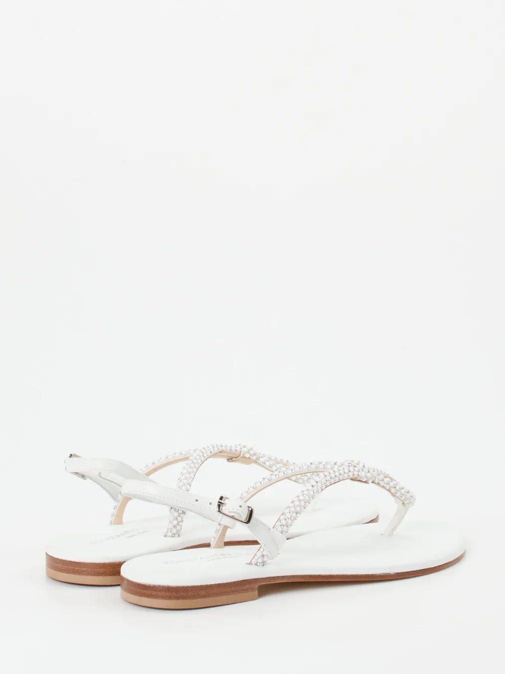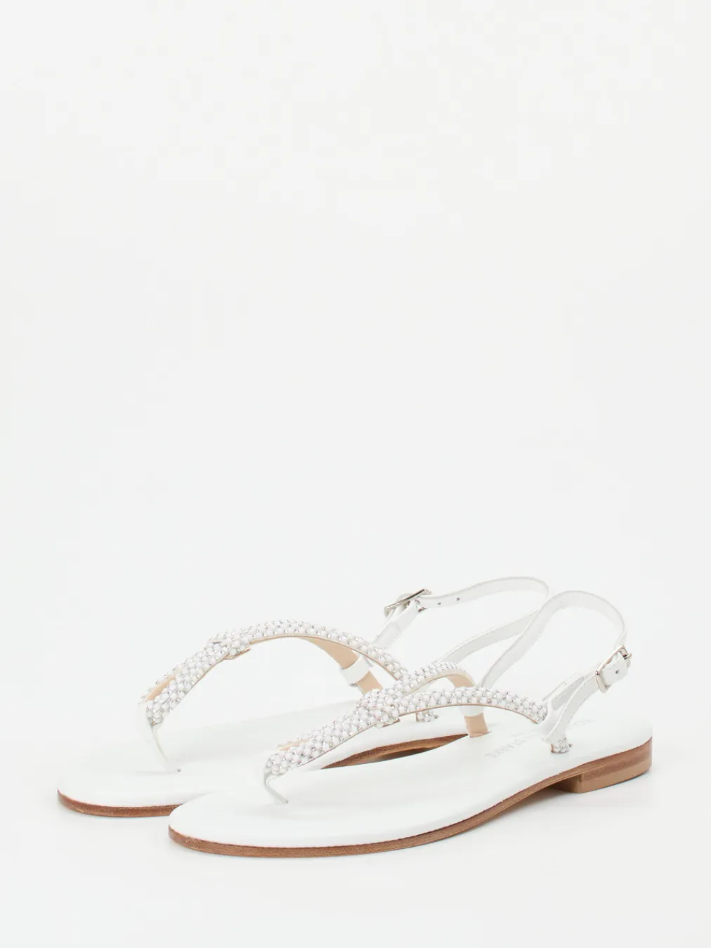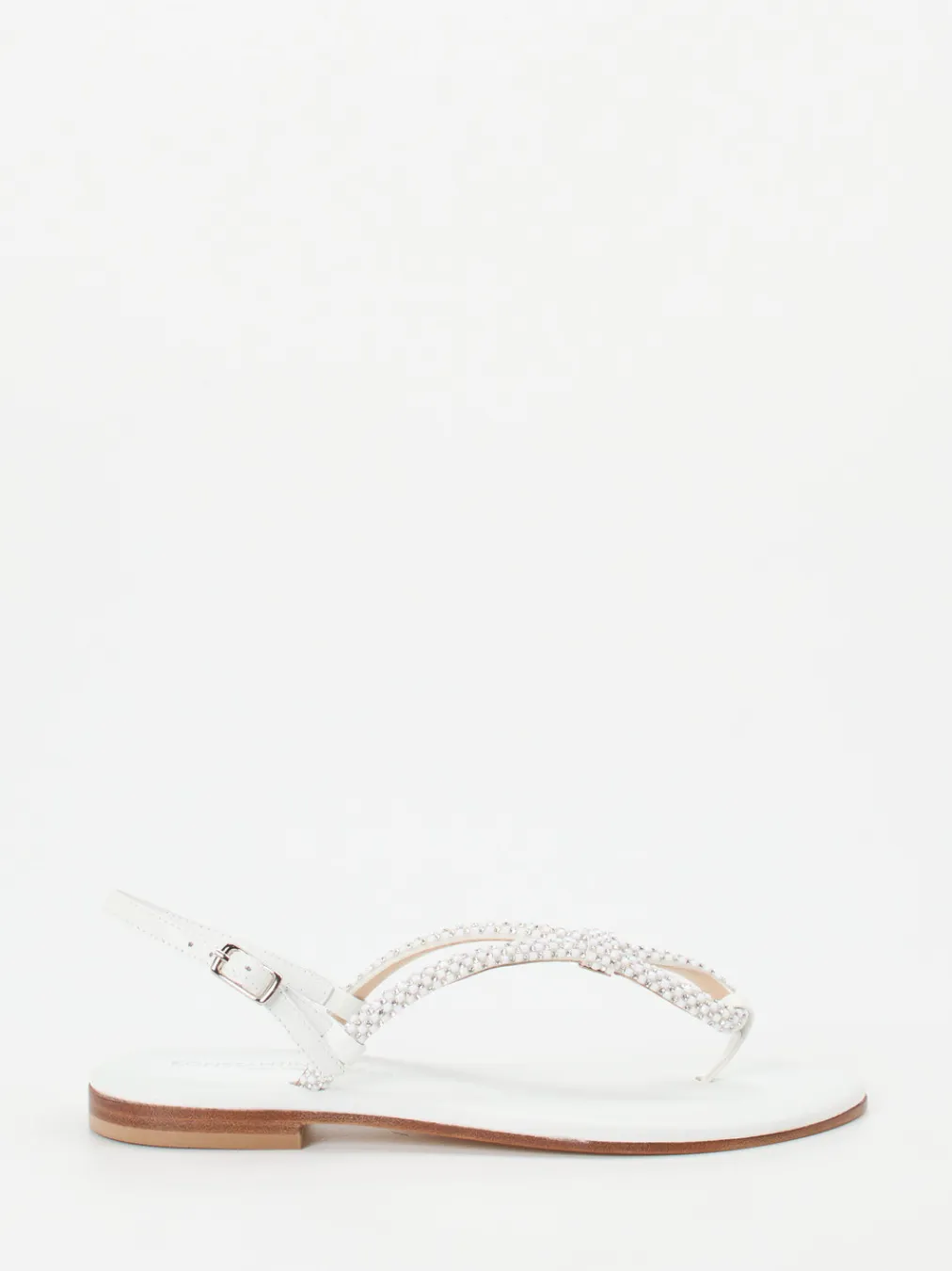 Filigran verarbeitete Zehentrenner-Sandale mit glänzendem Finish und zeitloser Strassverzierung – ein stilvoller Akzent für festliche Sommermomente.
