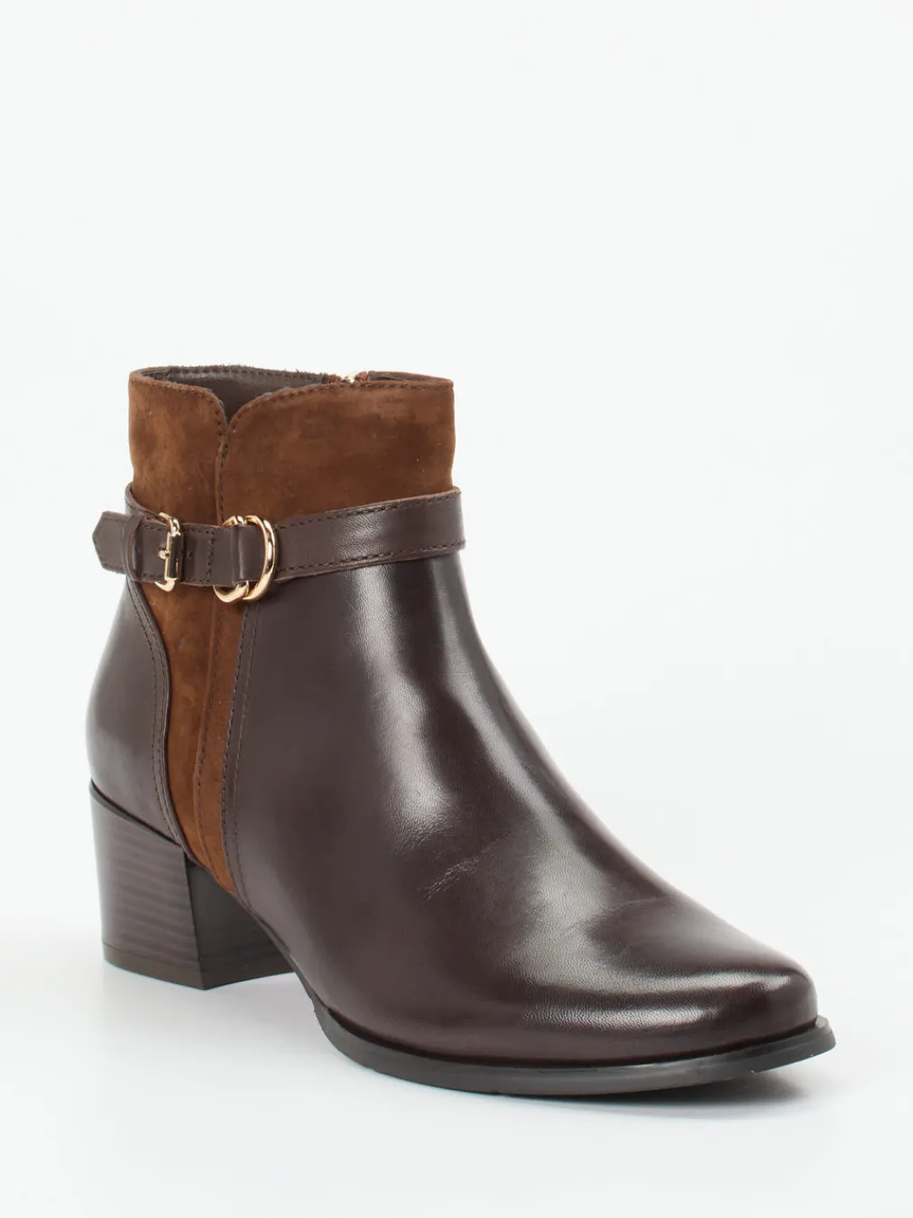 Ein hochwertiger Materialmix aus Kalbleder und Veloursleder verleiht diesen Ankle Boots ihre stilvolle Optik – ideal für Büro, Alltag oder elegante Herbstlooks.