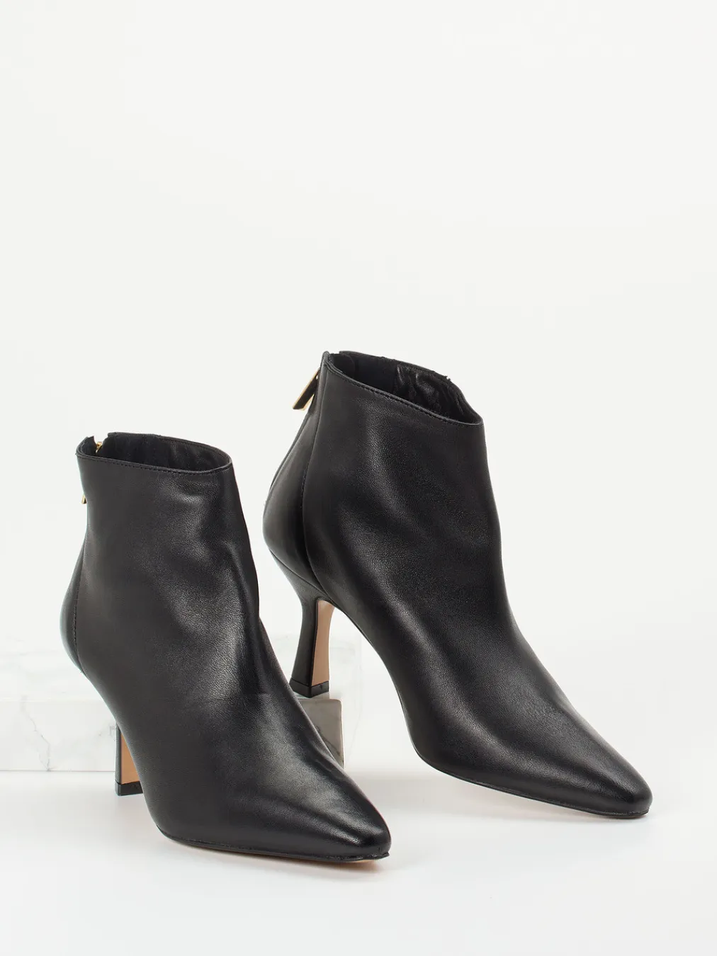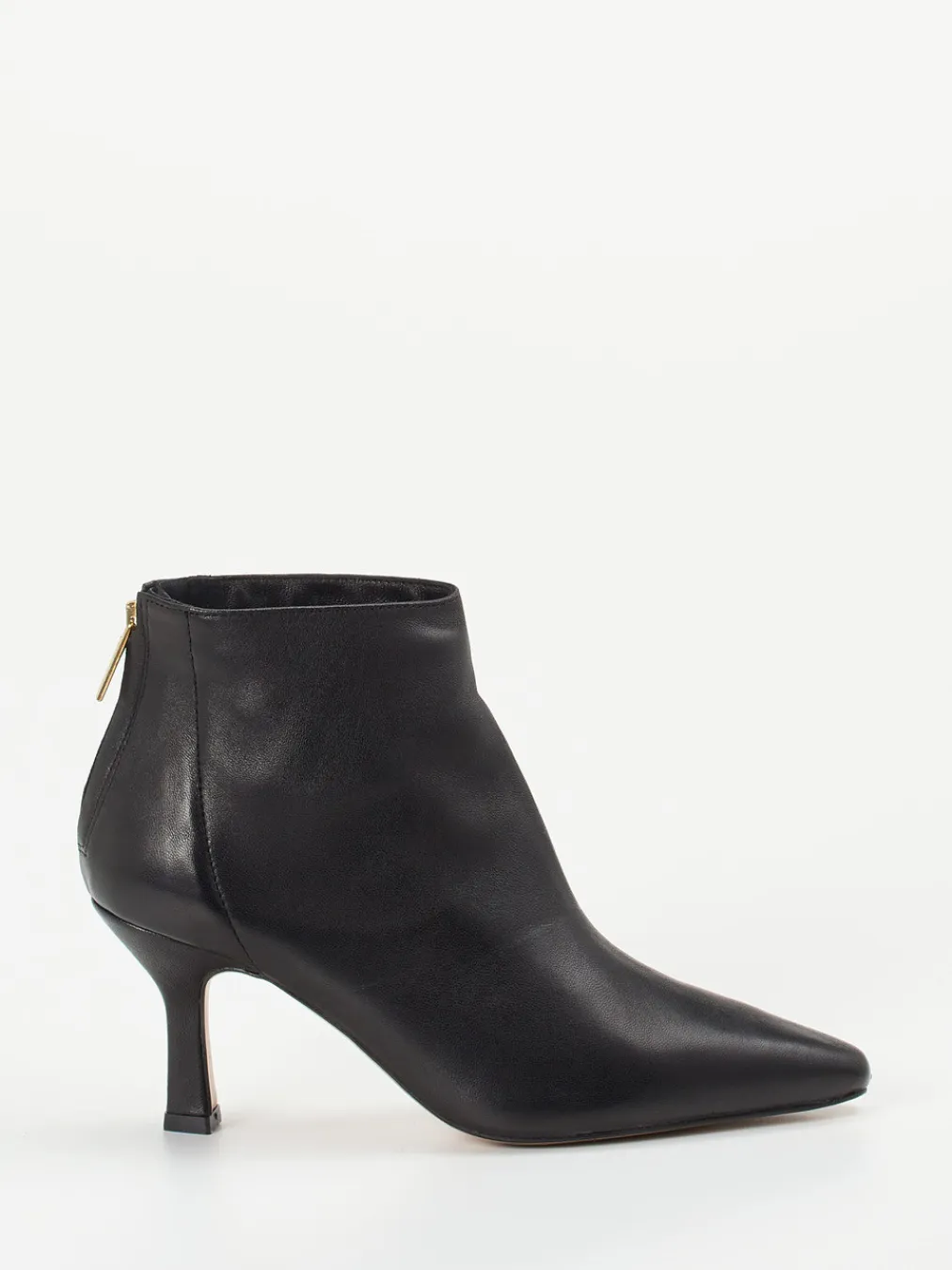 Der ausgewählte Kitten Heel und das pointiert geschneiderte Lammleder bringen minimalistische Eleganz mit femininer Raffinesse zusammen.