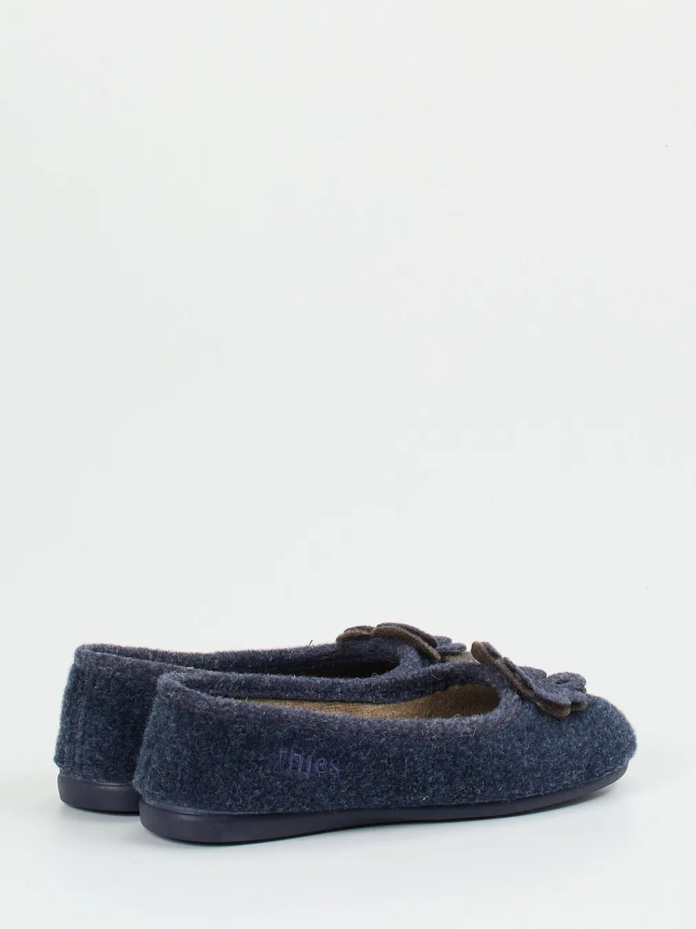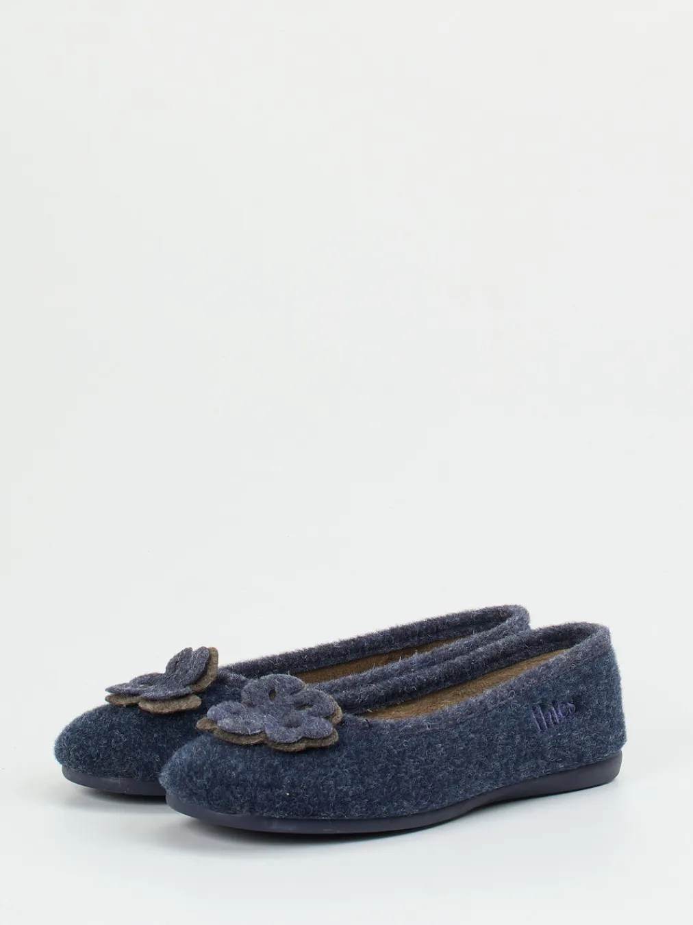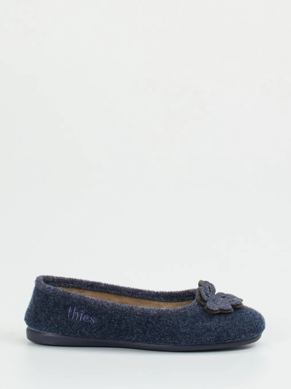 Thies präsentiert diesen Ballerina-Hausschuh für Damen aus dunkelblauem Wollfilz. Die klassisch-runde Silhouette und der Schlupfeinstieg sorgen für einen bequemen Sitz.