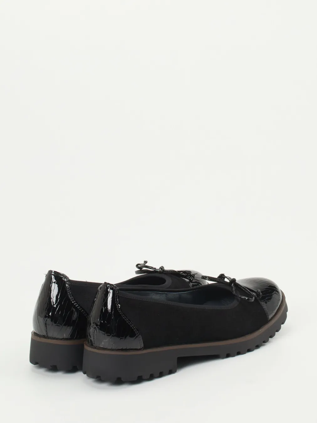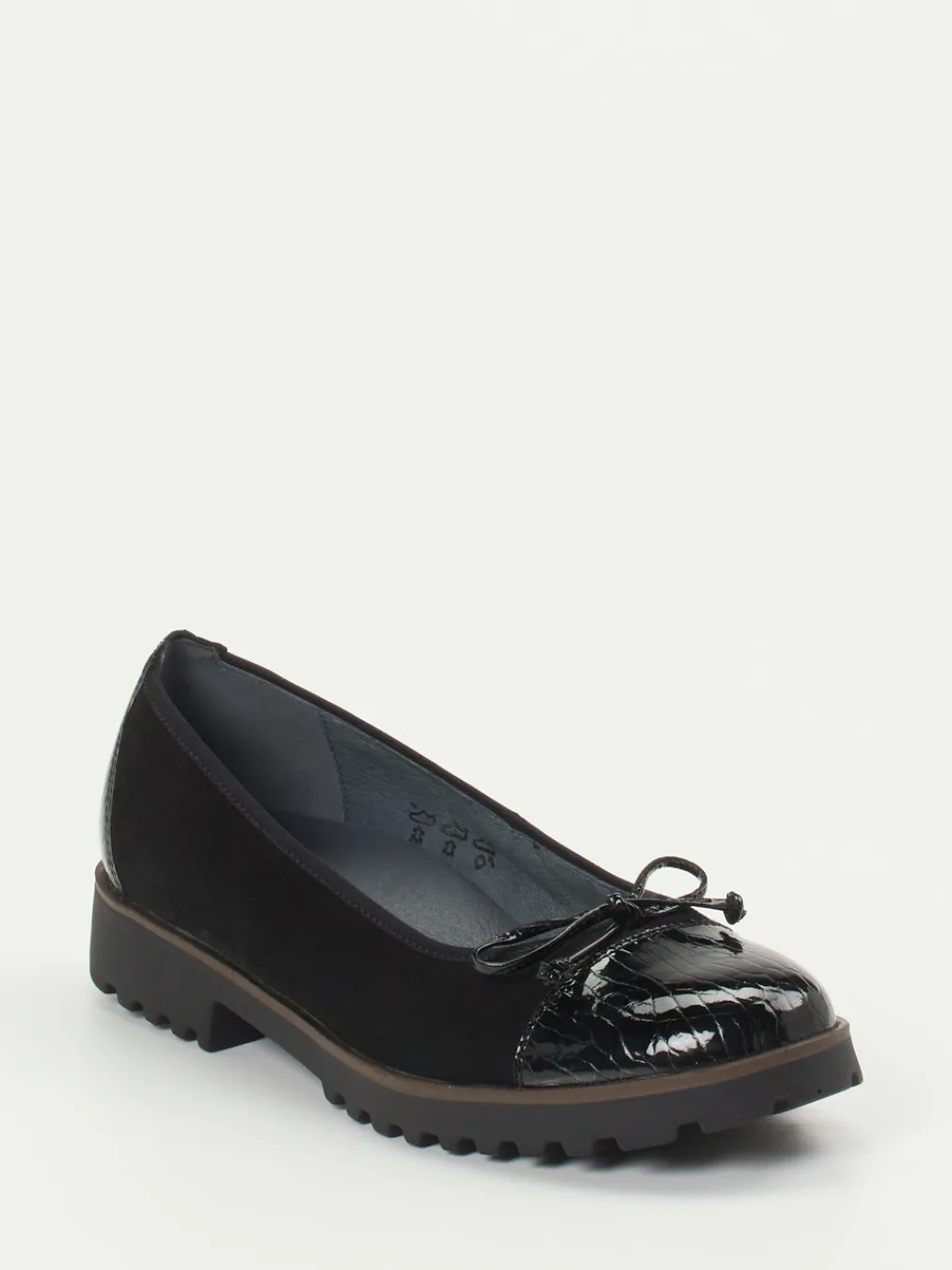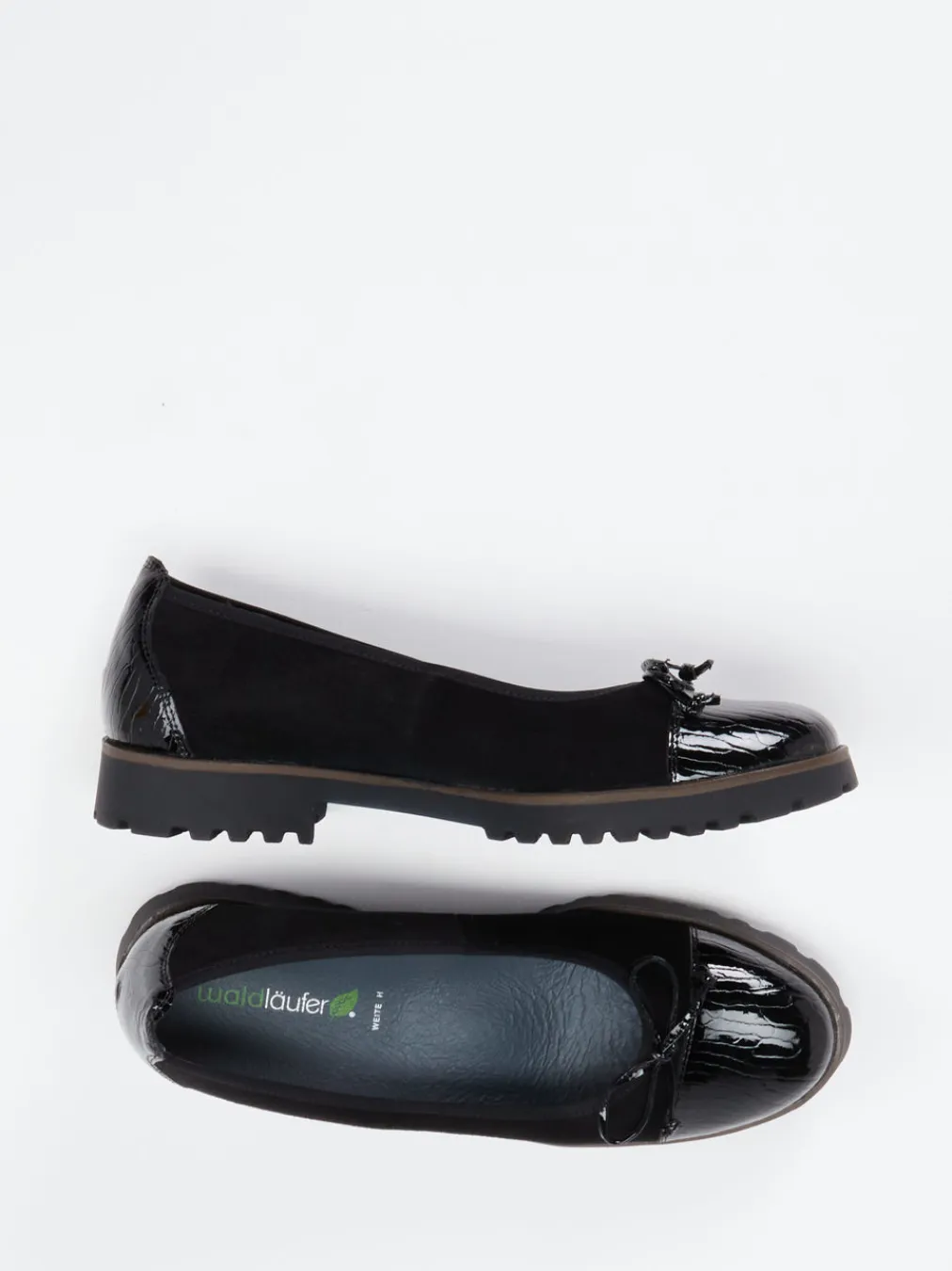 Komfort trifft Strukturvielfalt.Die Marke Waldläufer präsentiert komfortorientierte Damen-Ballerinas mit urbaner Note. Ideal für lange Tage im Büro oder unterwegs in der Stadt: Diese Ballerinas kombinieren weiches, schwarzes Veloursleder mit glänzend lackierter Krokoprägung an Kappe und Ferse. Die dezente Schleife und die klassische runde Silhouette unterstreichen die feminine Linie, während das hochwertige Lederfutter und die herausnehmbare Einlegesohle mit Weite H für Bequemlichkeit sorgen. Eine rutschfeste Gummisohle mit dezentem Kontraststreifen ergänzt das funktionale Design. Trendstark im Stilfeld „Quiet Luxury“ verankert, passen sie hervorragend zu monochromen Looks mit edler Strickmode. Verlässlicher Komfort in urban inspirierter Optik – entwickelt für anspruchsvolle Beweglichkeit.
