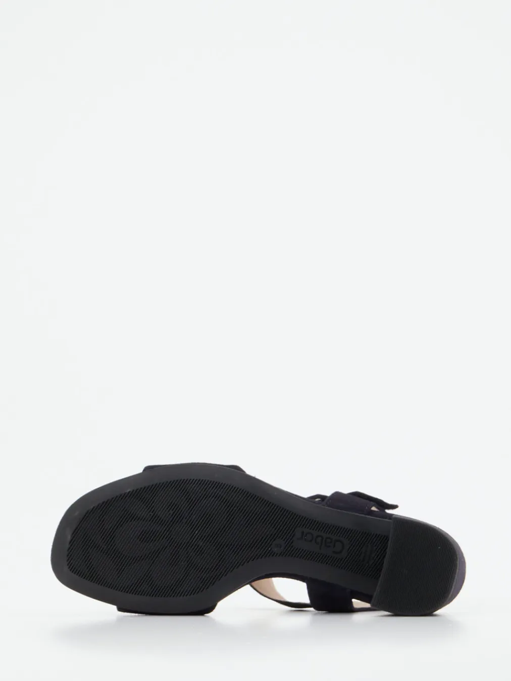 Eleganz in every Step.Gabor präsentiert mit dieser Damen-Sandale ein Klassiker-Modell mit raffiniertem Minimalismus. Ideal für warme Tage im Büro oder festliche Gelegenheiten: Das marineblaue Veloursleder zeigt sich samtig-matt und umhüllt auch den komfortabel hohen, blockigen Absatz. Die offene Silhouette mit verstellbarem Riemen und einer dezent tonalen Metallschnalle kombiniert modernen Chic mit funktionalem Komfort. Das ledergefütterte Fußbett ist leicht gepolstert, die Gummisohle rutschhemmend strukturiert. Inspiriert vom Trend „Quiet Luxury“ passt der Look ideal zu Soft-Neutrals und monochromen Sommer-Outfits. Gabor steht hier für handwerkliche Qualität und stilsichere Alltagstauglichkeit.