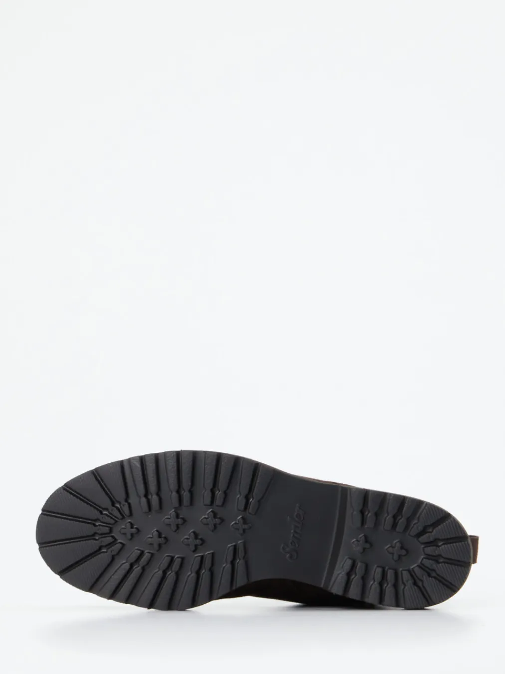 Dank schokoladenbraunem Veloursleder, komfortabler Weite H und robustem Profil bietet dieser Boot modischen Stil und Alltagstauglichkeit gleichermaßen.