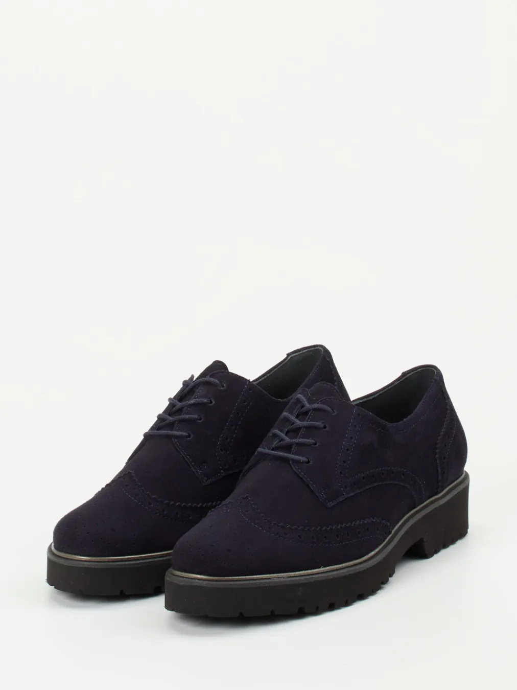 Der klassisch gestaltete Schnürschuh vereint samtiges Veloursleder mit filigraner Brogue-Lochung und griffiger Sohle – ein eleganter Mix für Büro und Alltag.