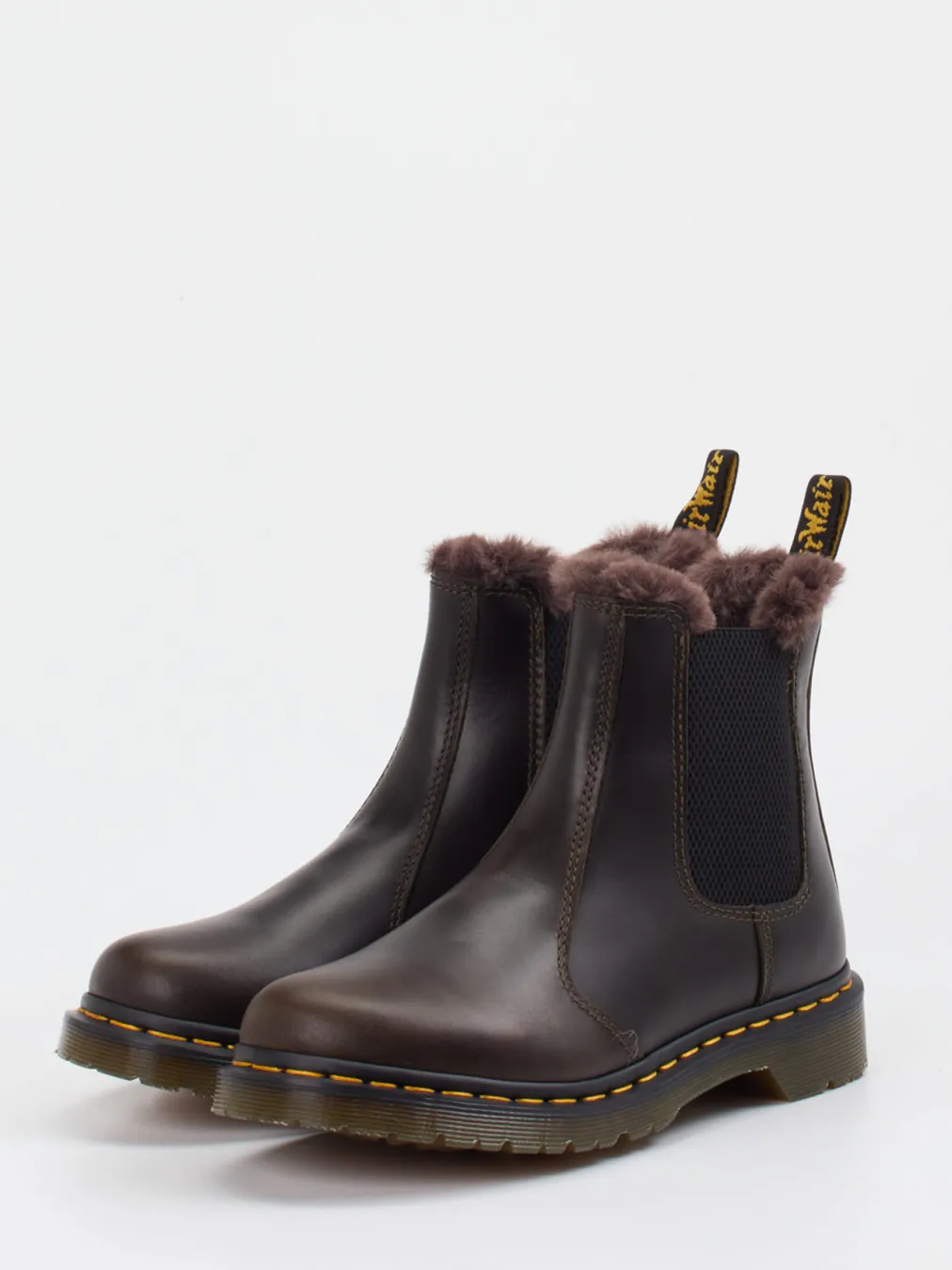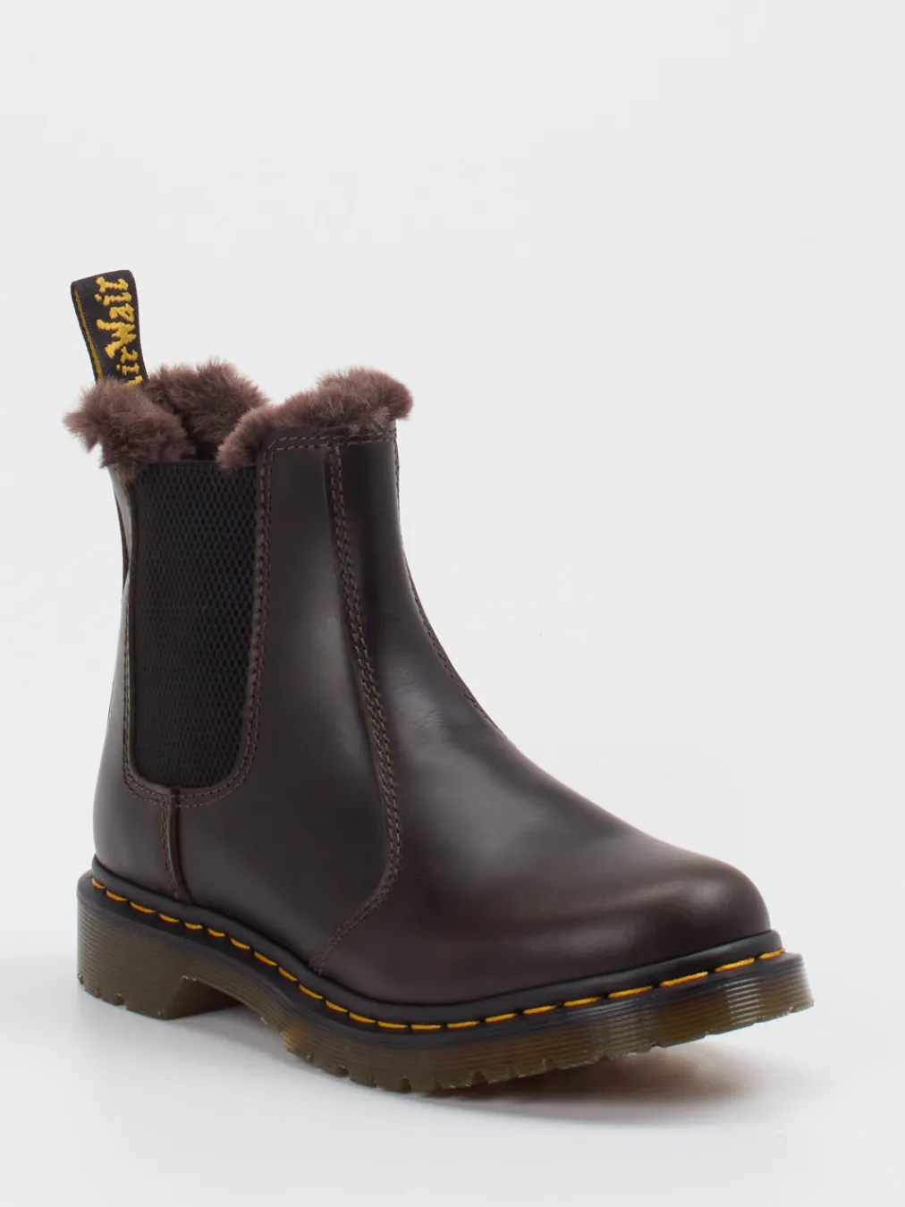 Für urbane Wintertage gemacht.Dr. Martens präsentiert klassische Chelsea Boots für Damen aus robustem Kalbleder. Für kalte Tage in der Stadt oder auf winterlichen Pfaden bieten diese Chelsea Boots mit warmem Textilfutter und rutschfester Gummisohle verlässlichen Komfort. Das glatte, matte Kalbleder in Dunkelbraun überzeugt durch strapazierfähige Qualität, ergänzt durch elastische Einsätze und eine markante Zuglasche mit Logo-Schriftzug. Die klare, knöchelhohe Silhouette greift Workwear-Elemente auf und passt in die Gorpcore-Trendkulisse der aktuellen Saison. Gelbe Kontrastnähte setzen dezente Akzente und betonen die Originalität. Markentypisch verbindet Dr. Martens ikonischen Look mit langlebiger Funktionalität.