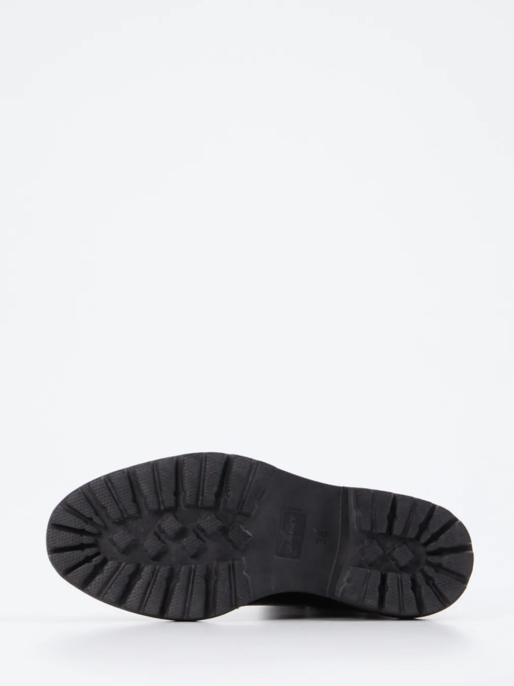 Markanter Stil fürs urbane Herbst-Outfit.Die Chelsea Boots von Gant verbinden klassische Formensprache mit modernem Design. Als stilvolle Lösung für Büro und Freizeit überzeugen sie durch schwarzes, glänzendes Kalbleder mit glatter Oberfläche und feiner Lochmusterung. Die knöchelhohe Silhouette, typische Elastikeinsätze und Zuglaschen ermöglichen schnelles Anziehen. Eine markant profilierte Gummisohle sorgt für guten Halt und spiegelt den aktuellen Heavy-Sole-Trend. Die Ton-in-Ton Verarbeitung unterstreicht die minimalistische Eleganz. Besonders harmonisch kombinierbar mit dunklem Wollmantel oder schwarzer Leder-Handtasche. Ein authentisches Heritage-Statement mit modernem Auftritt – typisch Gant.