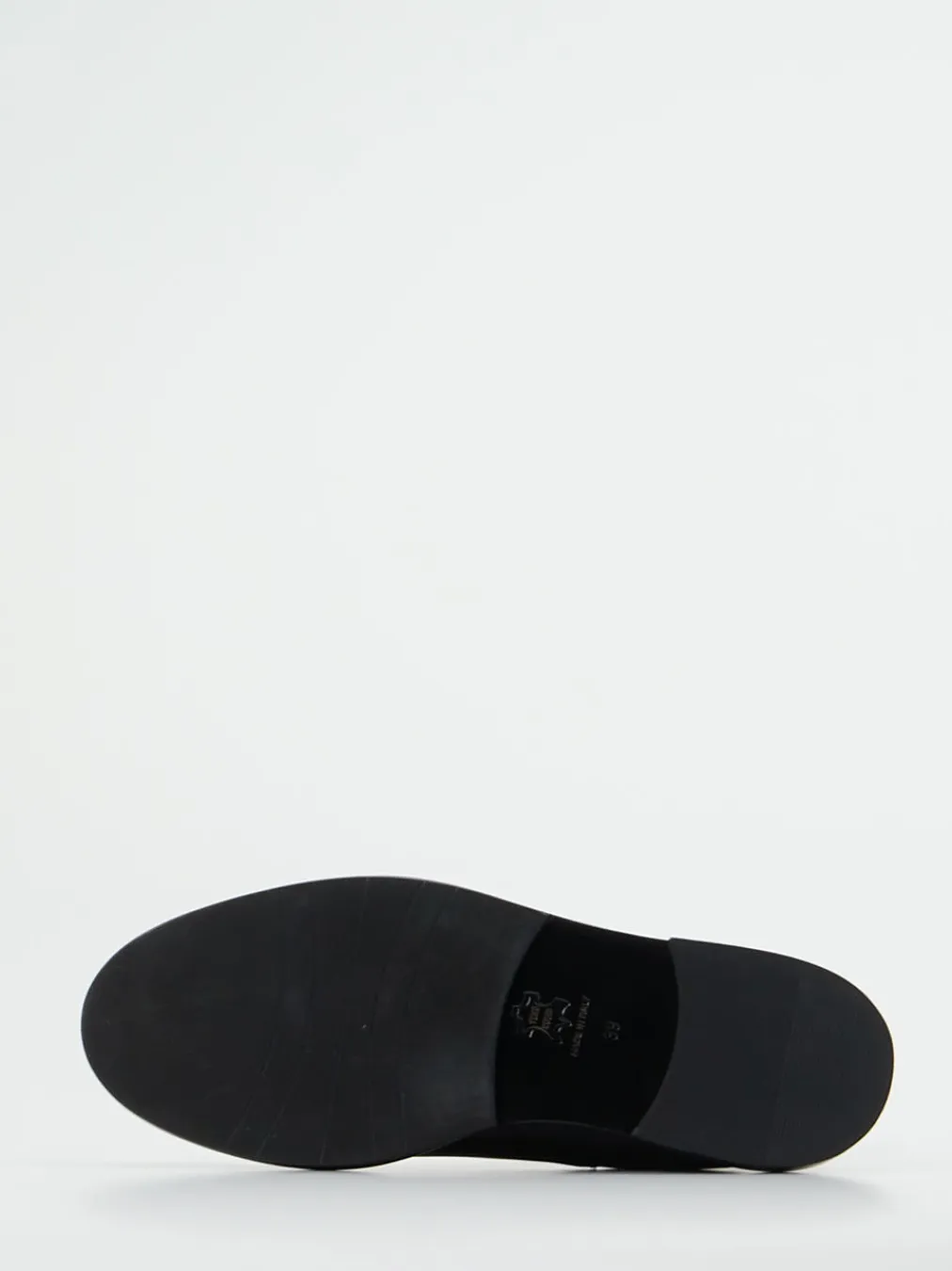 Black Boot Power.Konstantin Starke präsentiert klassische Chelsea Boots für stilbewusste Auftritte in Business und Alltag. Wenn ein Look eine klare Linie verlangt, passt dieses Modell perfekt: Das schwarze Kalbleder mit dezentem Glanz und matter Anmutung wirkt edel und reduziert. Tonige Elasteinsätze und eine schlanke Zuglasche setzen auf Understatement; der knöchelhohe Schnitt sorgt für zeitlose Proportion. Die profilierte ½ Gummi-/Ledersohle interpretiert den „Heavy Sole“-Trend angenehm dezent. Ein Wechselfußbett erhöht den Komfort. Besonders empfehlenswert zu schmal geschnittenen Wollhosen und anthrazitfarbenem Mantel. Zeitgemäße Ästhetik trifft auf langlebige Handwerksqualität.