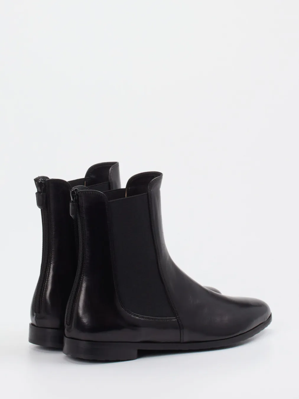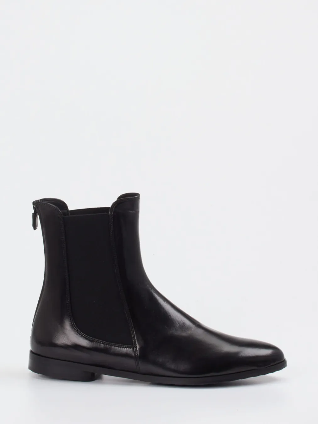 Schwarz, schlicht, stilvoll.Truman’s präsentiert ein Chelsea-Modell für Damen, das moderne Zurückhaltung perfekt inszeniert. Für minimalistische Looks und klare Linien designt, überzeugen diese knöchelhohen Stiefeletten in tiefschwarzem Veloursleder und mit schmaler Silhouette. Elastikeinsätze sorgen für klassischen Chelsea-Charakter, während der rückseitige Reißverschluss das Anziehen erleichtert. Die glatte, leicht glänzende Oberfläche, Ton-in-Ton-Nähte und eine Gummisohle runden das Design funktional ab. Als Teil des „Quiet Luxury“-Trends passt der Stil ideal zu Kaschmirmänteln oder monochromen Business-Outfits. Ein Modell, das zeitlose Eleganz mit gehobener Qualität verbindet.