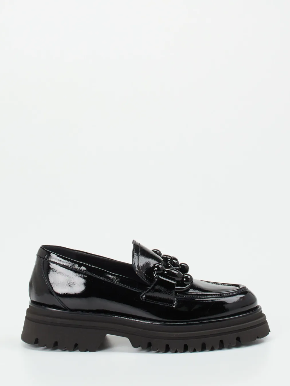 Elegantes Lackleder trifft auf moderne Silhouette: Dieser Chunky Loafer vereint klaren Stil mit trendbewusster Aussagekraft.