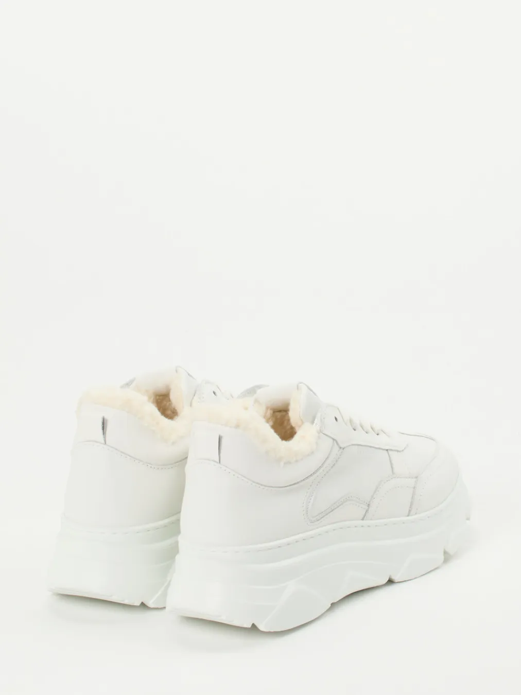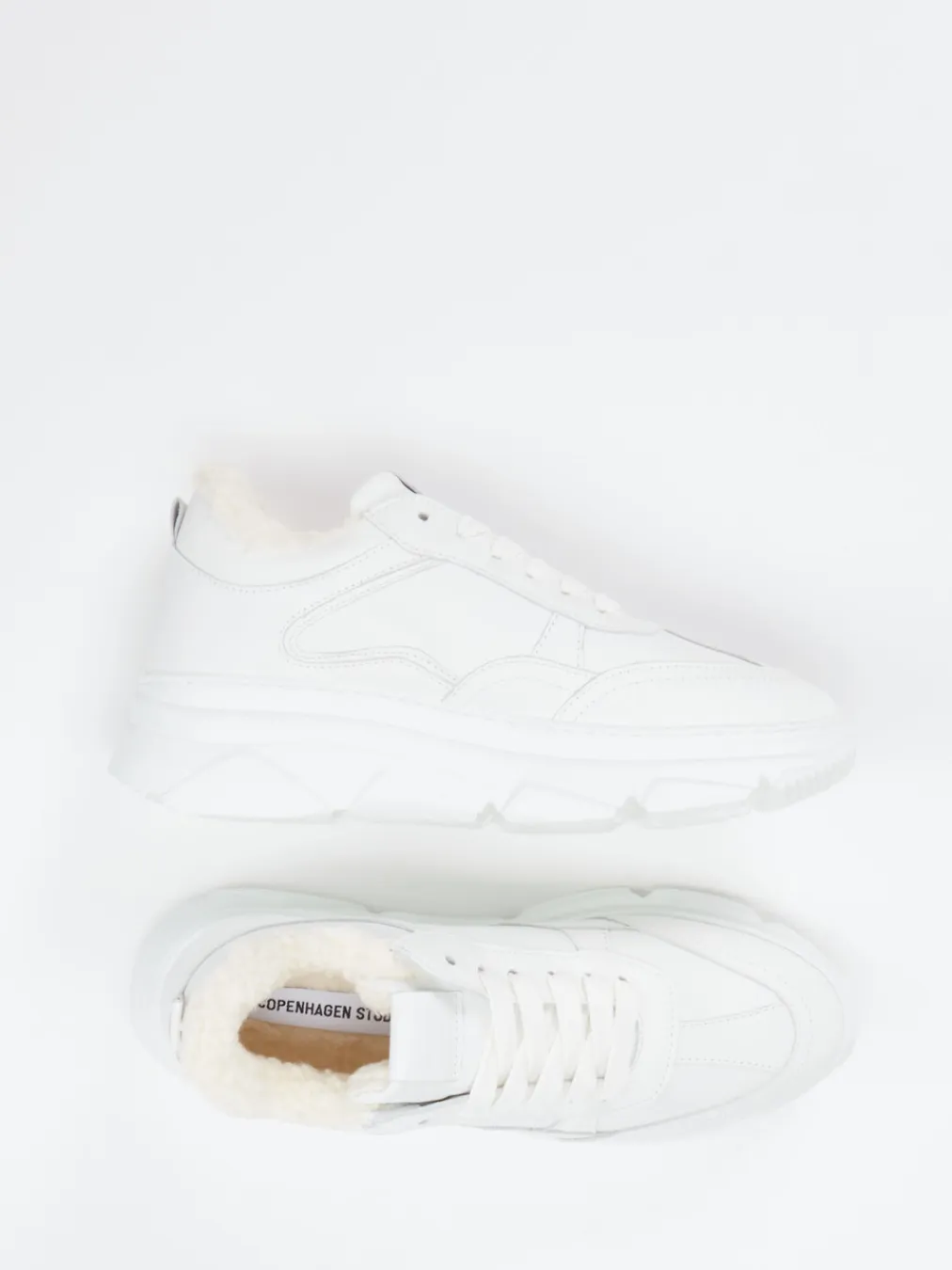 Urbaner Trend mit Komfortplus.Der Damen-Sneaker von Copenhagen vereint minimalistisches Design mit praktischen Winterdetails. Ob beim Stadtspaziergang oder für entspannte Alltagsmomente – das weiße Kalbleder mit matter Oberfläche bietet Robustheit und eine cleane Optik. Innen sorgt ein warmes Kunstfellfutter für kuscheligen Komfort, ergänzt durch ein gepolstertes Wechselfußbett. Die griffig profilierte Gummisohle im Chunky-Design unterstreicht den angesagten Streetwear-Stil und verleiht sicheren Halt. Dezente Ton-in-Ton-Nähte und die Panelstruktur betonen die reduzierte Formensprache. Ideal kombinierbar mit Steppjacke oder Hoodie. Copenhagen steht hier für stilvolle Funktionalität in urbaner Winterästhetik.