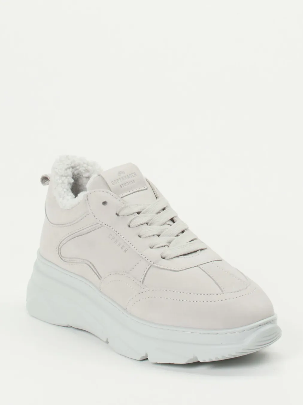 Wärmender Begleiter mit urbanem Anspruch.Copenhagen stellt mit diesem Damen-Chunky-Sneaker ein durchdachtes Modell für Herbst und Winter vor. Sobald die Temperaturen sinken, sorgt das Innenfutter in Lammfell-Optik für behagliche Wärme. Das wind- und wasserabweisende Nubukleder überzeugt mit samtig angerauter Haptik in elegantem Hellgrau. Die chunky Silhouette, eine stark profilierte Gummisohle und dezente Ton-in-Ton-Nähte prägen den modernen Streetwear-Charakter. Schnürung und Fersenlasche unterstützen den unkomplizierten Einstieg. Perfekt kombinierbar mit Winterjacke und Beanie für stilvolle Casual-Looks. Copenhagen bietet kompromisslosen Komfort in angesagtem Design.