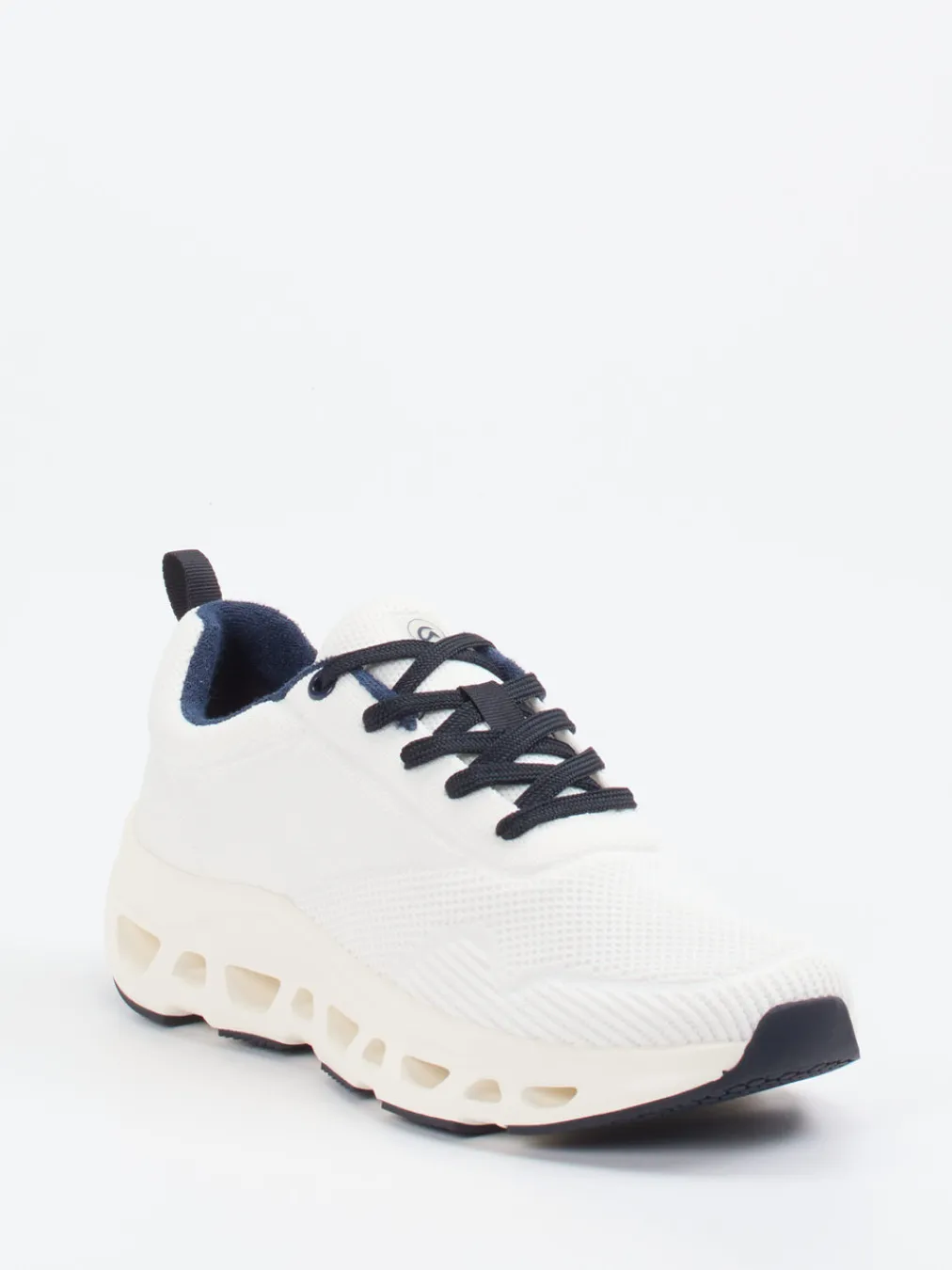 Komfort trifft auf stylisches Volumen.Die Marke Ara präsentiert diesen Damen-Sneaker in moderner Chunky-Optik. Ob beim Stadtbummel oder unterwegs zur Pilates-Stunde – der „Rio“ Sneaker kombiniert leichtes, strukturiertes Textil mit atmungsaktivem Frotteefutter und High-Soft-Innensohle für maximalen Laufkomfort. Farblich akzentuiert durch dunkelblaue Fersenlasche und Schnürsenkel, zeigt sich das sonst weiße Modell clean und vielseitig. Die gelochte PU-Sohle mit rutschhemmendem Profil setzt einen funktionalen Designakzent. Im Stil zwischen Minimalismus und Athleisure angesiedelt, wirkt der Schuh besonders modern. Perfekt für entspannte Looks mit maritimer Frische und bewährtem Ara-Komfort.