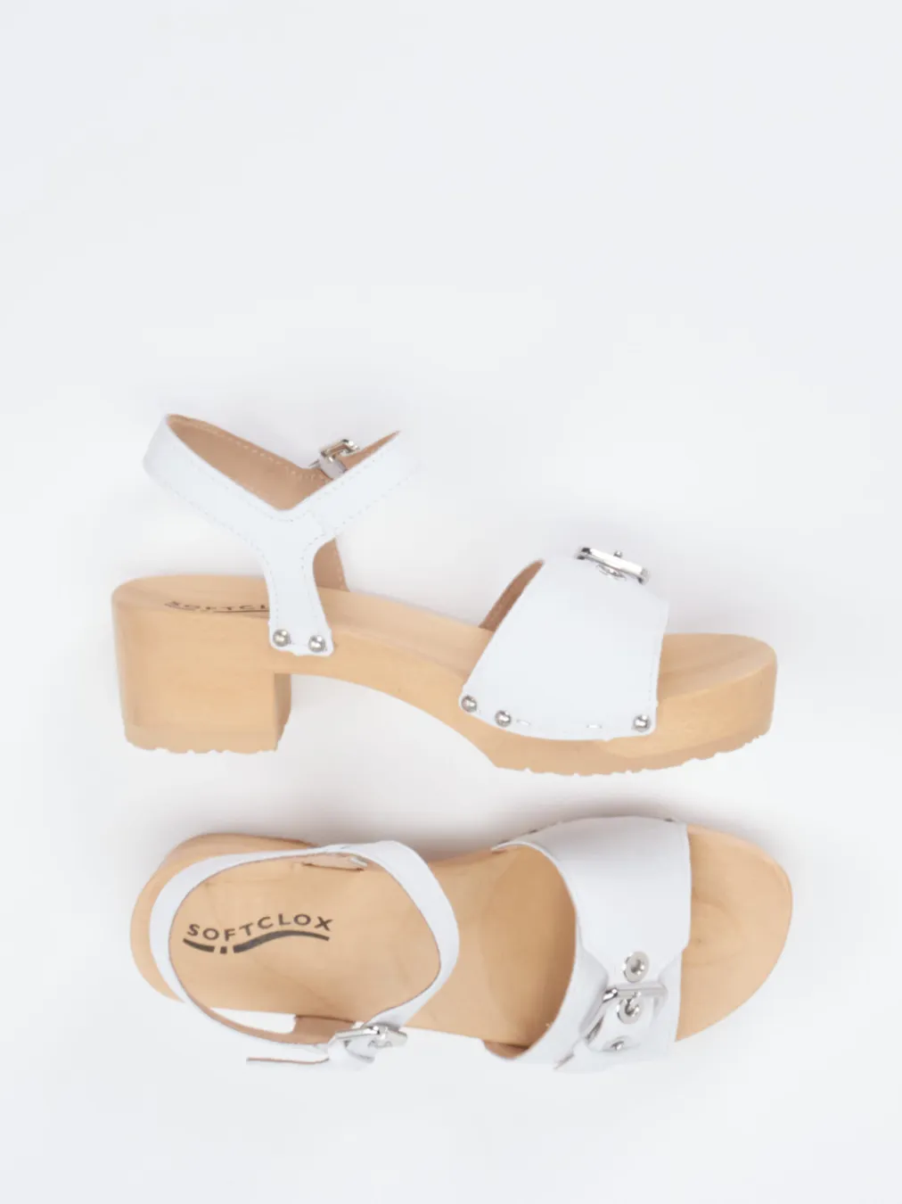 Sommerstil mit Retro-Charme.Softclox präsentiert eine Damen-Clogsandale, inspiriert vom skandinavischen Design. Ideal für entspannte Urlaubstage und urbane Freizeitlooks: Das weiß gefärbte Lammleder wirkt in Kombination mit der naturbelassenen Holzsohle modern und hochwertig. Verstellbare Riemen mit silberfarbenen Metallschnallen und markanten Nieten setzen stilbewusste Akzente. Die anatomisch geformte Holzsohle mit Gummieinsatz bietet Flexibilität und einen angenehmen Laufkomfort. Der 5 cm hohe Blockabsatz sorgt für femininen Stand, das offene Design für Leichtigkeit an warmen Tagen. Perfekt zu Leinenkleidern oder Bast-Accessoires im Scandi Chic. Hochwertige Materialien und durchdachte Ergonomie – typisch Softclox.