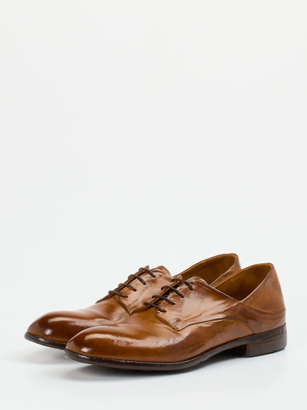 Dieser klassische Derby-Schnürschuh vereint italienische Handwerkskunst mit einem modernen Patina-Finish – ideal für formelle Auftritte mit stilvoller Raffinesse.