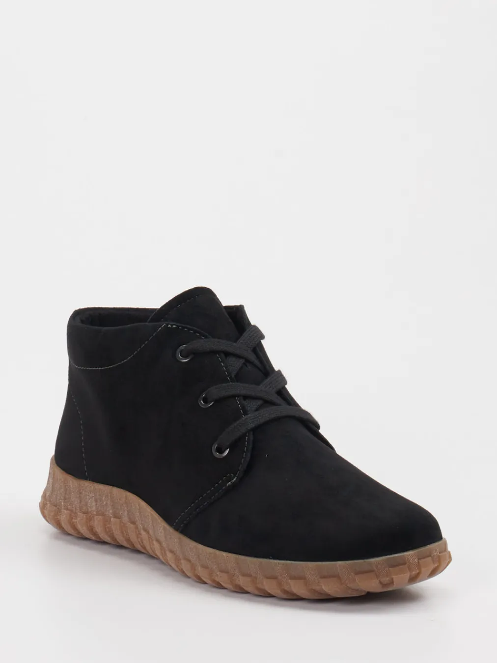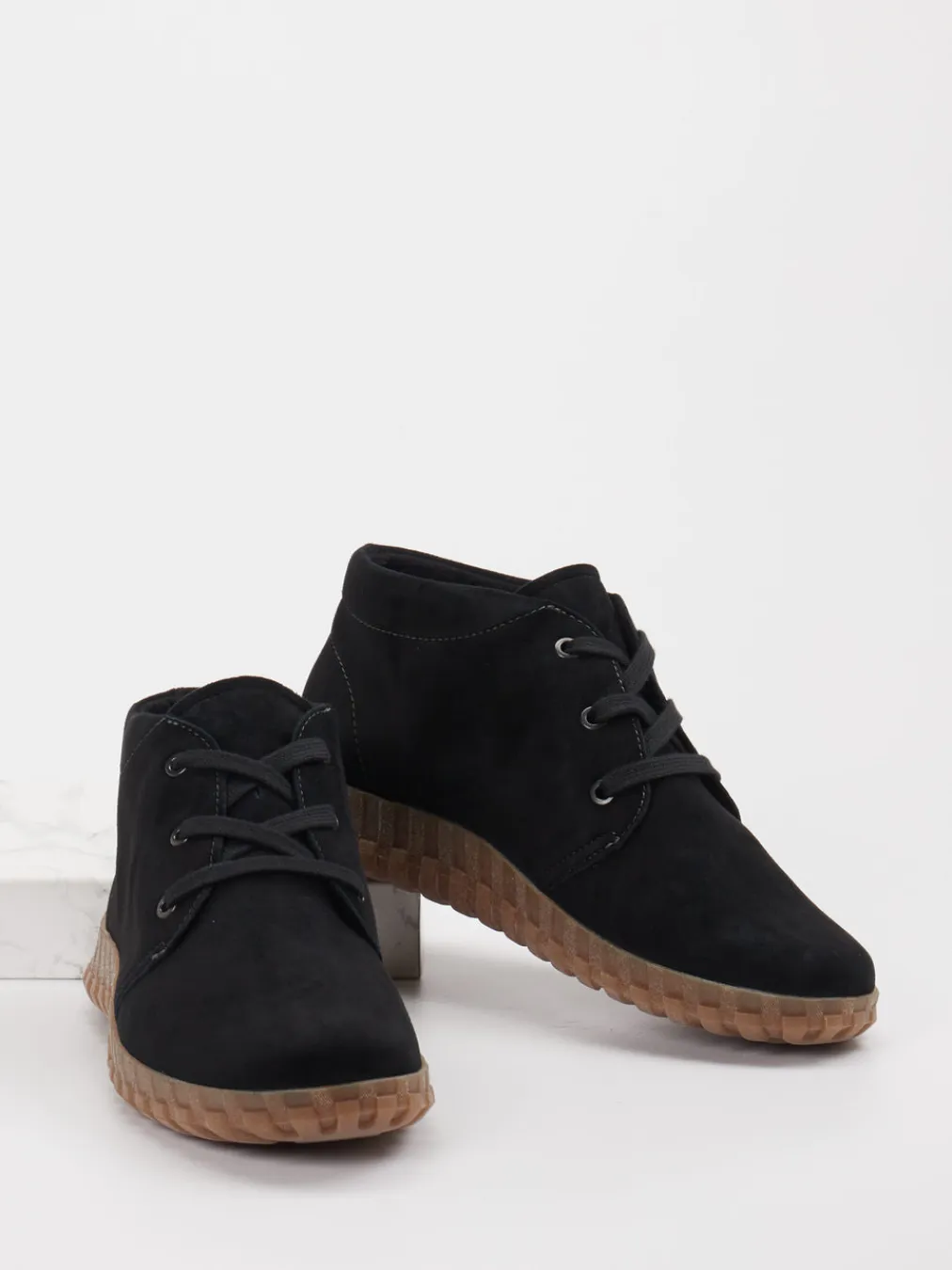 Schlichte Eleganz mit Komfortprofil.Die Marke Semler präsentiert mit diesen Desert Boots ein komfortorientiertes Modell für Damen. Ob für entspannte Stadtwege oder lässige Alltagslooks – die Schnürstiefelette aus schwarzem Veloursleder wirkt mit ihrem matten Finish dezent und modern. Die runde Form, tonale Schnürung und sichtbare Kontrastnähte unterstreichen das minimalistische Design. Ein leicht gepolsterter Schaftrand und das textile Innenfutter erhöhen den Tragekomfort. Dank profilierter Gummisohle bietet der Schuh Trittsicherheit auf herbstlichen Untergründen. Ein stilvoller Trendsetter, der sich bestens zu Leggings und Outdoorjacke kombinieren lässt. Bewegungsfreiheit trifft auf semmlertypische Bequemlichkeit.