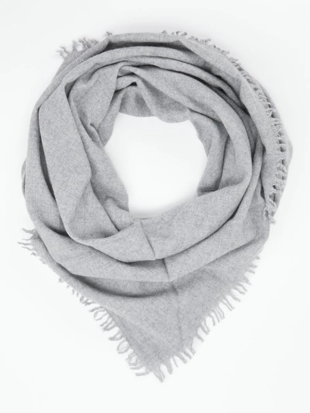 Weich, großzügig geschnitten und stilvoll: Dieses hellgraue Dreiecktuch von Blui bringt minimalistischen Charme und modernen Layering-Komfort in Einklang.